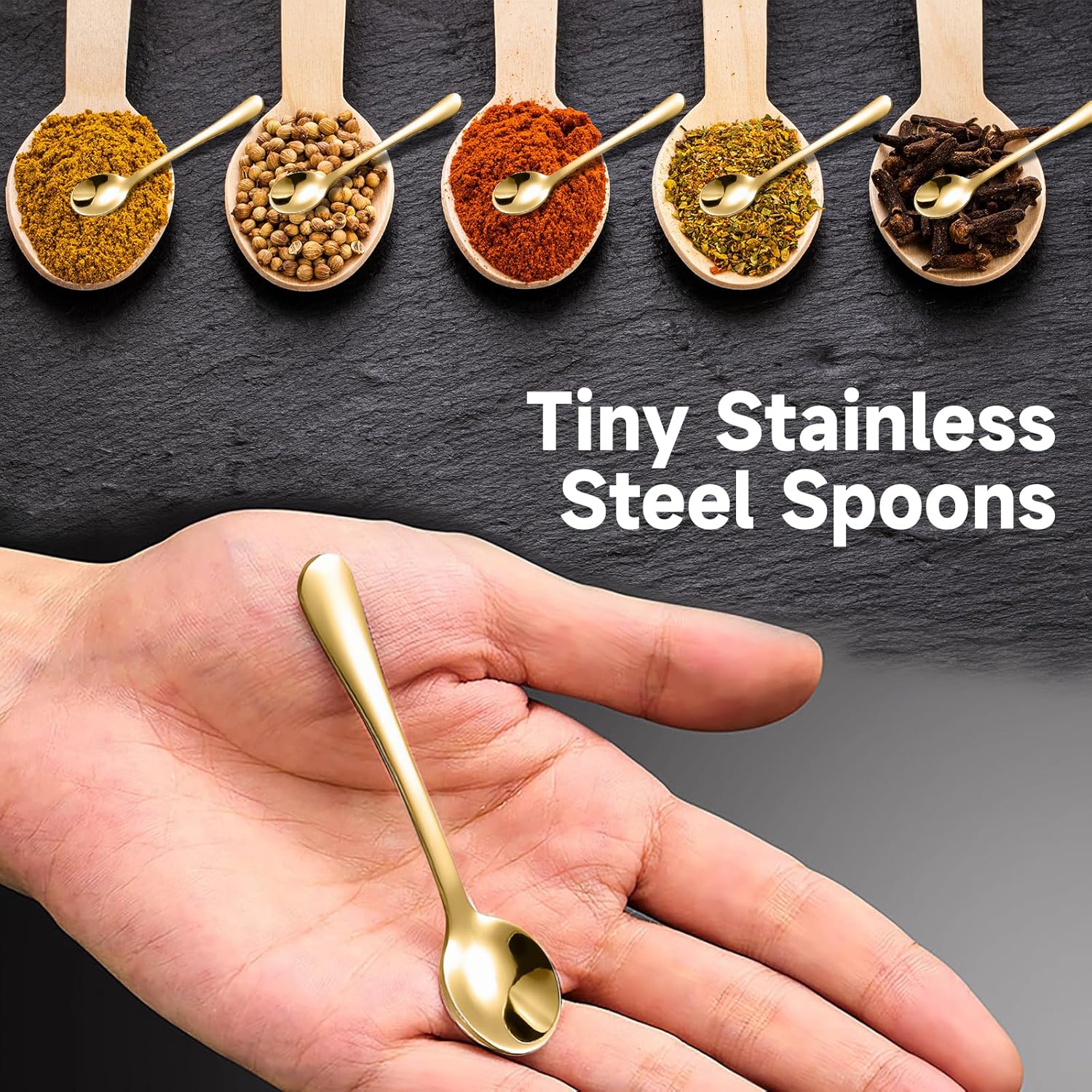 1. Много малък размер: 7,5 см дължина, 1,6 см ширина. Тези малки лъжички от неръждаема стомана са леки, но здрави. За многократна употреба и издръжливи.