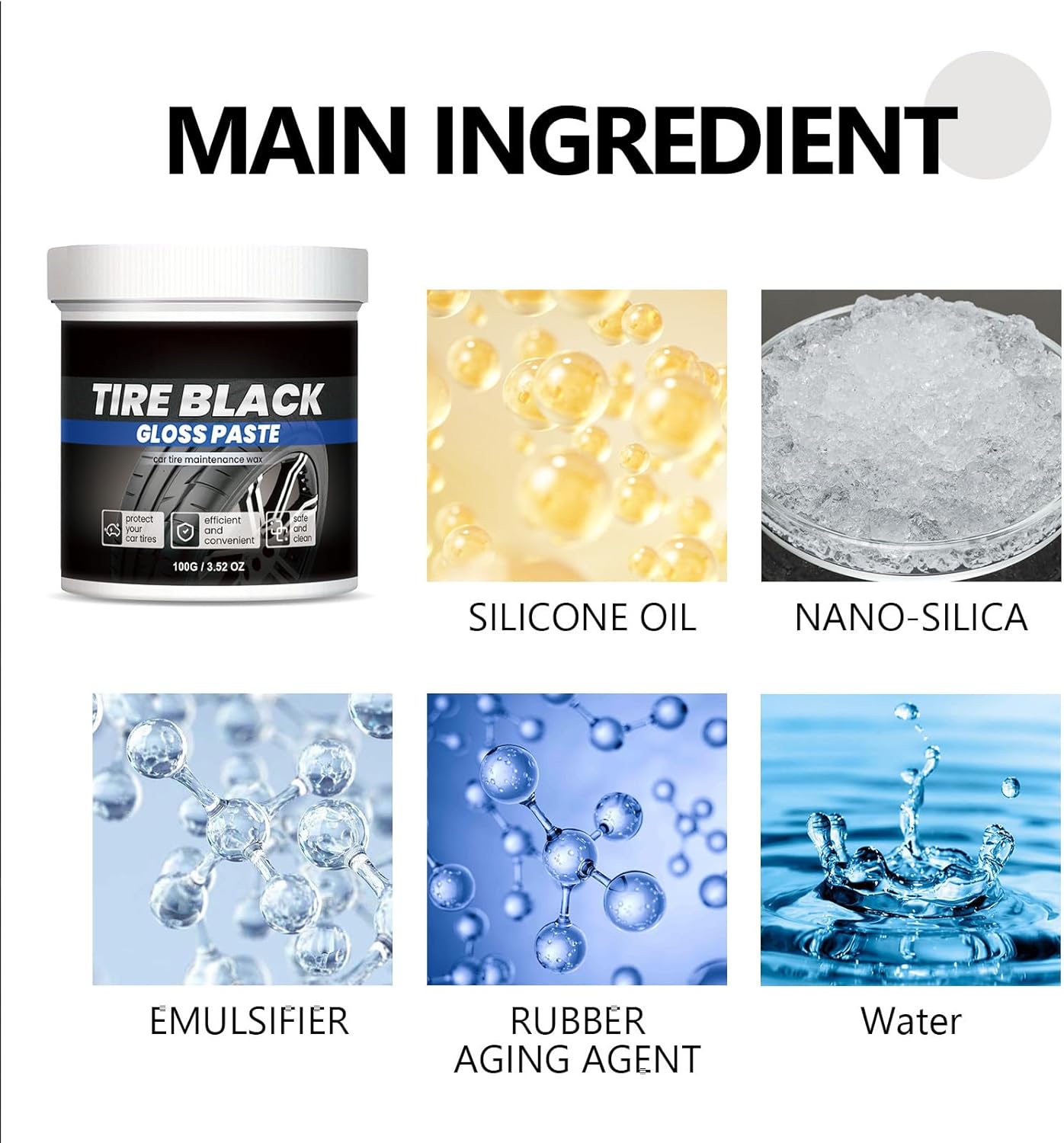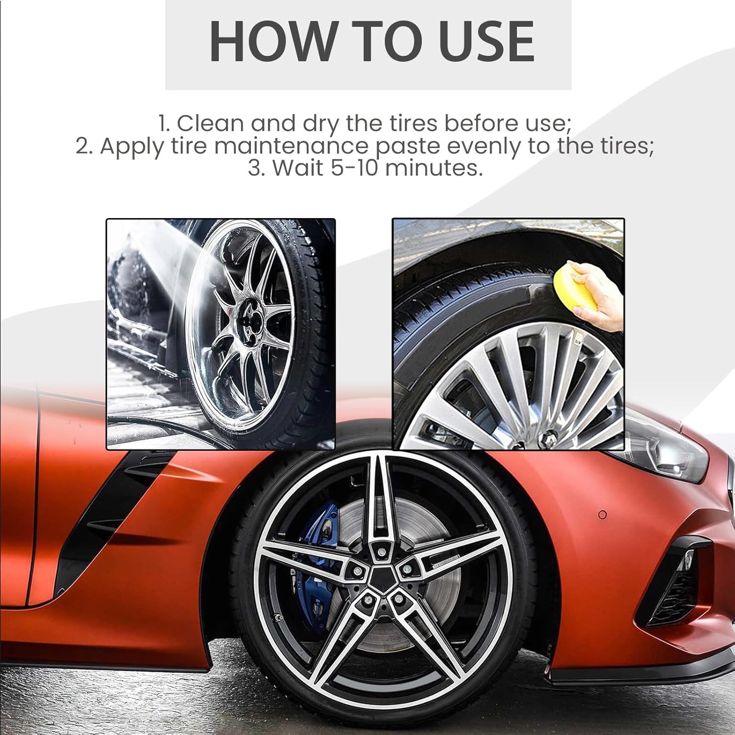 • СПЕЦИАЛЕН ДИЗАЙН Възстановете блясъка на гумите си с тази усъвършенствана паста за покритие. Тя е специално разработена, за да възстанови дълбокия, тъмночерен блясък, който ще придаде на гумите ви да изглеждат като нови.