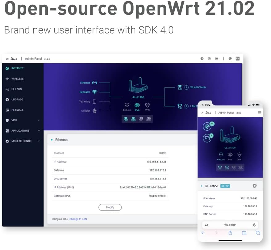 • Отворен код и програмируем: Slate Plus работи с най-новата операционна система OpenWrt 21.02 и има значително по-малко смущения в сигнала. Можете да персонализирате рутера и да инсталирате приложения според вашите желания.