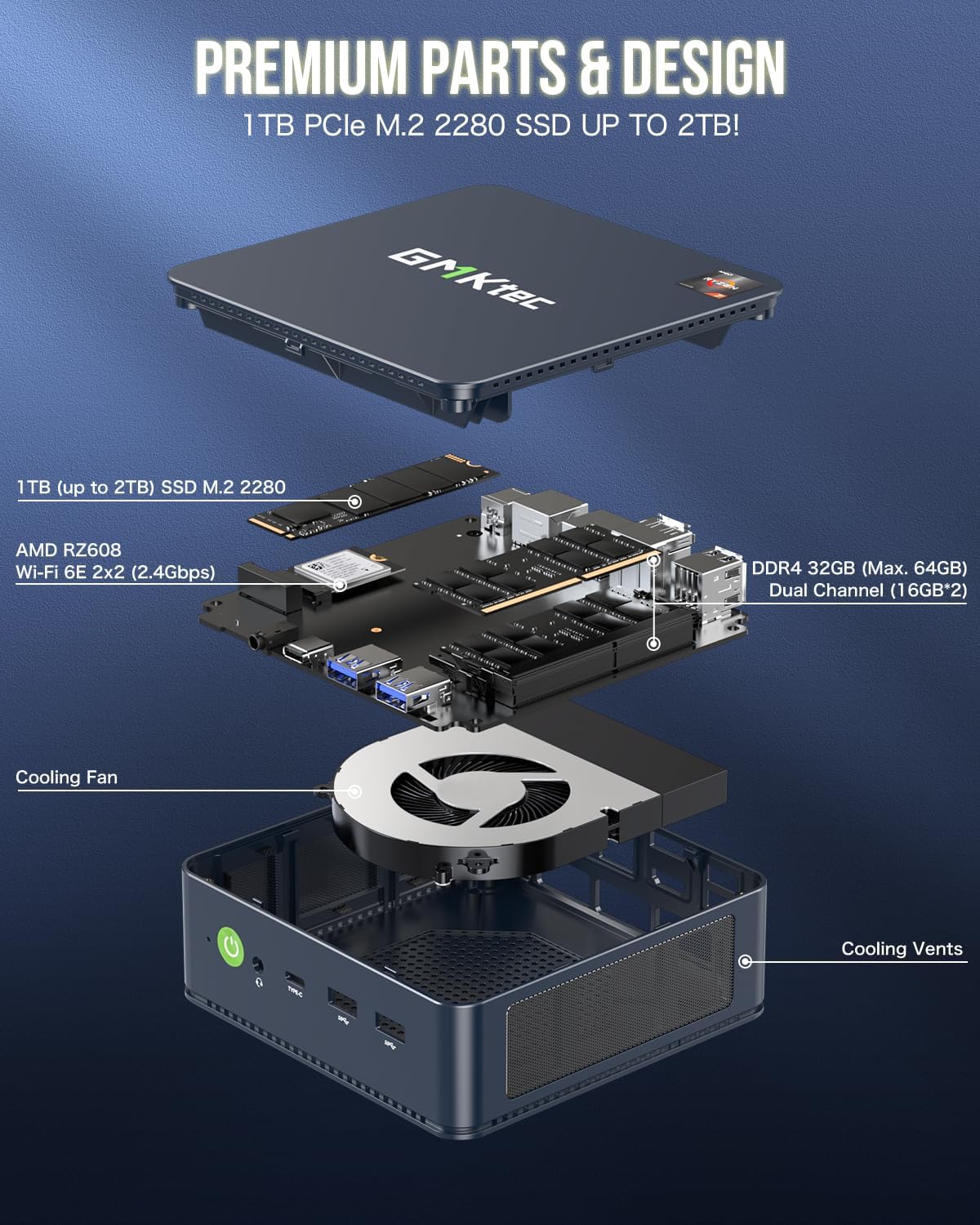 • 【32GB DDR5 + 1TB SSD】 Оборудван с 32GB DDR5 памет с тактова честота до 5600MHz за по-бърза обработка на данни и многозадачност. Двата 16GB канала поддържат разширение до 96GB, което позволява на потребителите да персонализират своите нужди от съхранение. 1TB PCIe 4.0 M.2 SSD осигурява ултрабързо съхранение и разширяемост до 8TB, идеален за големи натоварвания и големи капацитети за съхранение.