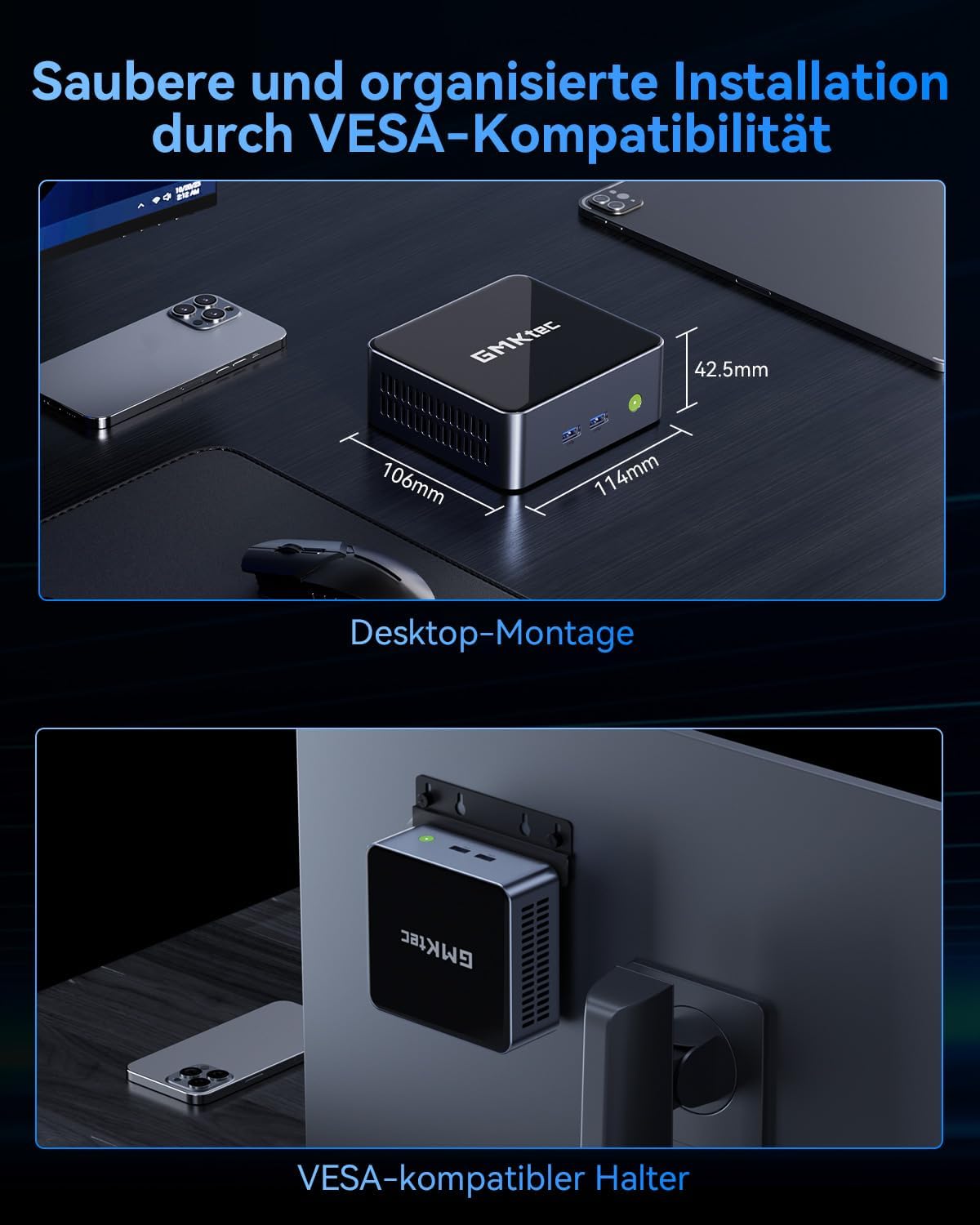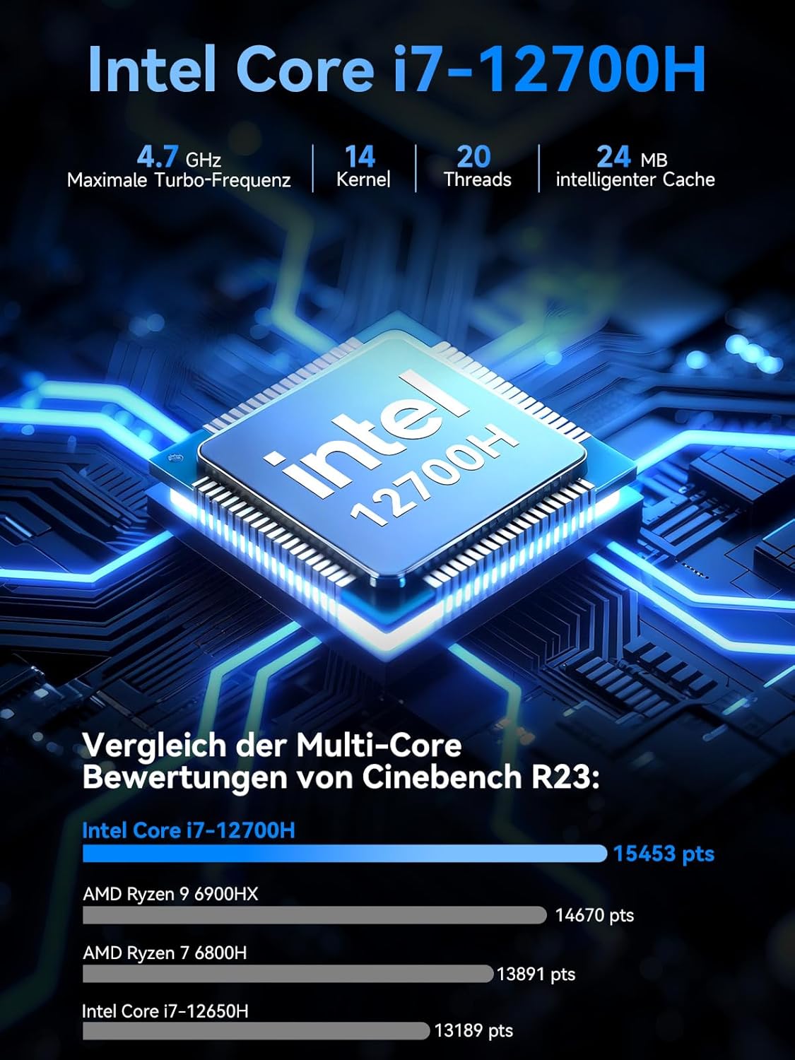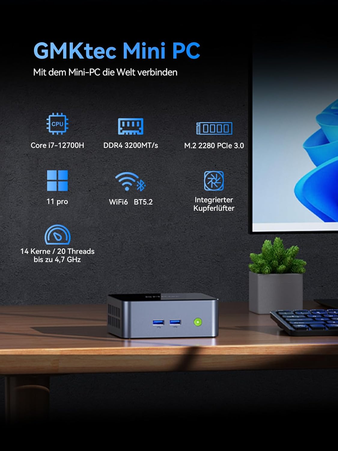 GMKtec Intel Mini PC i7-12700H (14C/20T, Turbo 4.7GHz) 16GB DDR4 512GB M.2 NVMe SSD (поддръжка на SATA) мини компютър с троен дисплей, USB 3.2 Gen 2 * 2, Type-C, WiFi 6/BT 5.2, 2.5G LAN