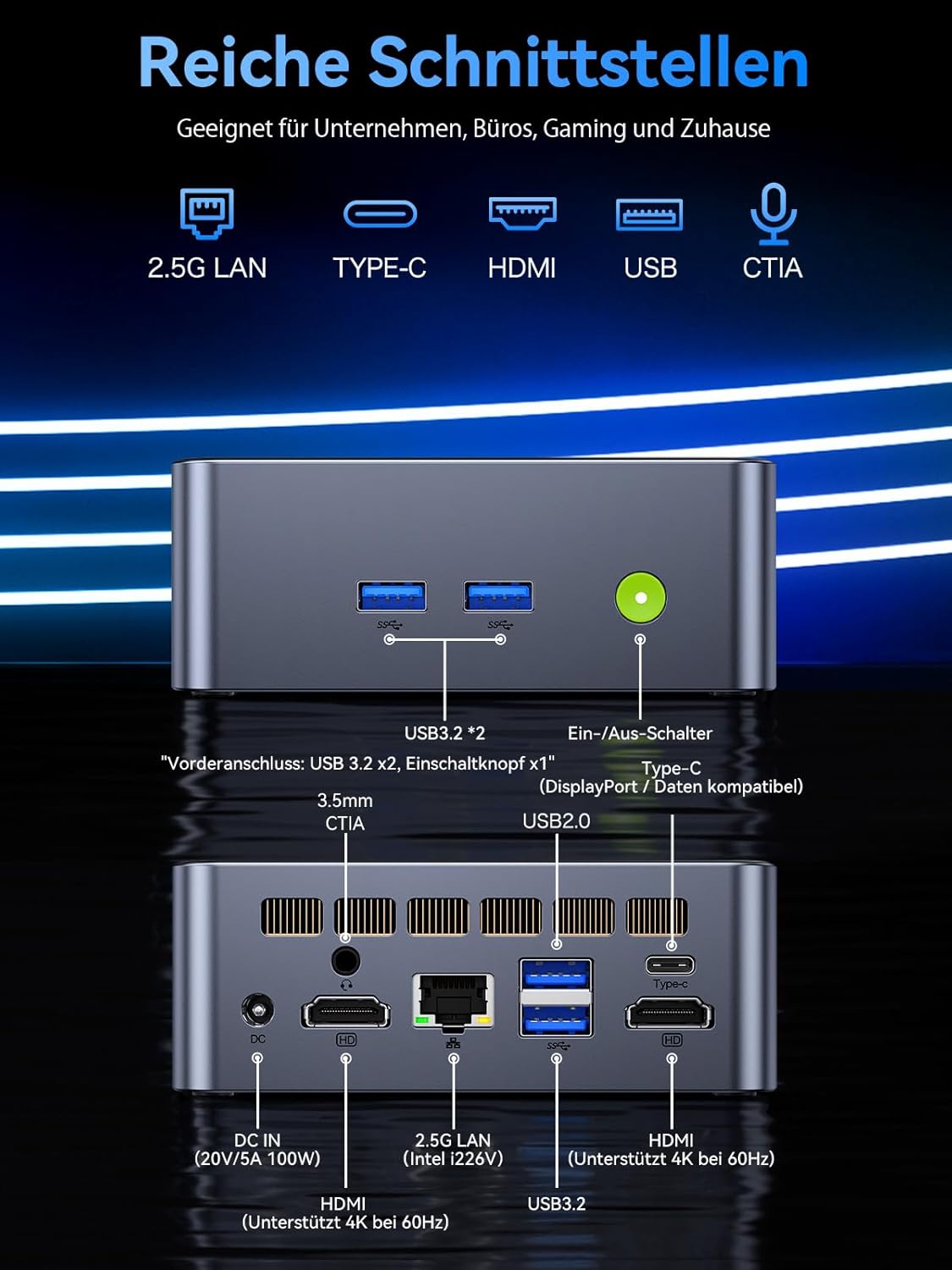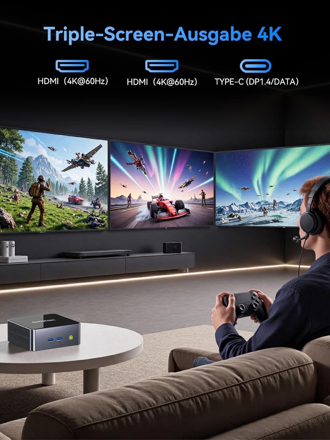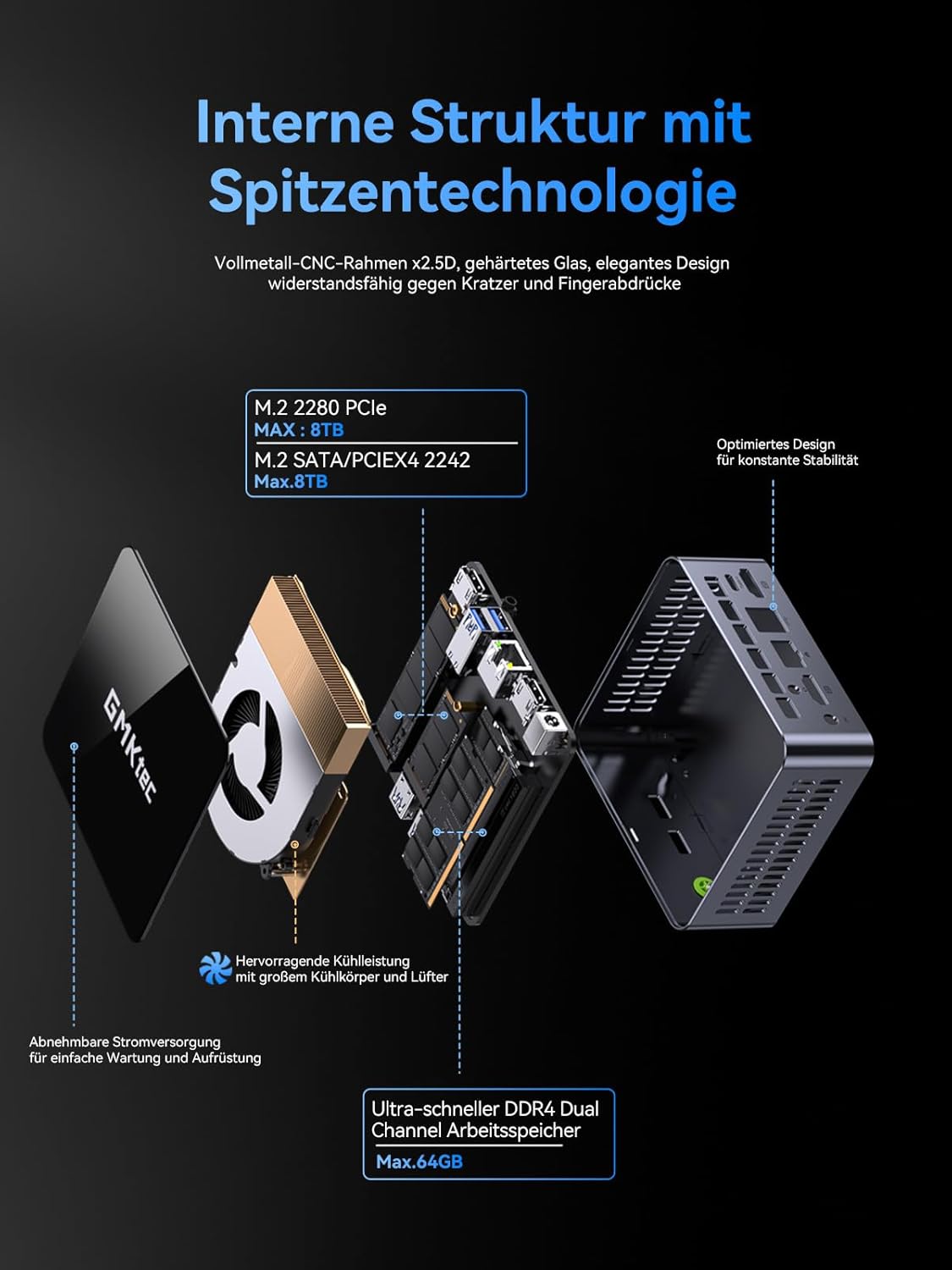 GMKtec Intel Mini PC i7-12700H (14C/20T, Turbo 4.7GHz) 16GB DDR4 512GB M.2 NVMe SSD (поддръжка на SATA) мини компютър с троен дисплей, USB 3.2 Gen 2 * 2, Type-C, WiFi 6/BT 5.2, 2.5G LAN