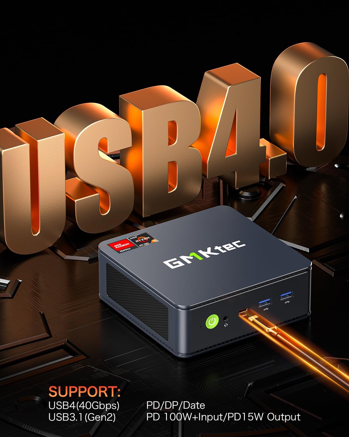 Why choose GMKtec Mini PC? The mini PC all-in-one computer will change your life! Our small gaming computer takes up less space and the fast processor charges software and application in seconds! Perfect PC for gaming, business, work, study, office, business, HTPC, PFsense, NAS and server. Technical data: model: AMD Ryzen 5 6600H CPU: AMD Ryzen 5 6600H (8C/16T, up to 4.5GHz, L2 4MB L3 8MB cache) processor graphics: AMD Radeon 660M 1900MHz RAM:32GB DDR5 dual channel (16*2) memory: 1. TB Ethernet : Dual LAN 2500Mbps x 2 RJ45 Wi-Fi: WiFi 6E (2.4 GHz/5.0 GHz/6.0 GHz) Bluetooth: BT5.2 expand the memory: 2 x M.2 2280 PCIe SSD NVME (max. 4TB) Small form factor PC: 5.1" x 5" x 1.9" Weight: 0.5 kg Connectors: 1 x DC jack 2 x USB 3.2 Gen2 (10GBps) port 1 x USB 3.2 port 1 x USB 2.0 port 2 x RJ45 port (2500Mbps LAN) 1 x HDMI 2.0 port 1 x USB 4.0 (PD/DP/DATA) port 1 x DP Connector 1 x 3.5mm Audio Jack (HP & Microphone) Package Contents: 1 x Nucbox M6 Mini PC 1 x HDMI Cable 1 x 19V/6.32A power supply. 1 x VESA Mount 1 x user manual (may not English language not guaranteed). After sales service. AMD Ryzen 5 6600H Gaming Mini Computer, 32GB DDR5 RAM 1TB Hard Drive M.2 2280 PCIe SSD. It is a mini PC with 4K@60Hz HDMI, USB 4.0 USB-C, DPv1.4 (4K@144Hz) (Video), WiFi 6E, BT5.2, USB 3.2*3, USB 2.0 For Business, Home and office. GMKtec mini computers have obtained CE, FCC and RoHS certifications for their performance and safety. All desktop mini PCs come with a one-year warranty and lifetime support. If you have any questions or concerns, just contact us.
