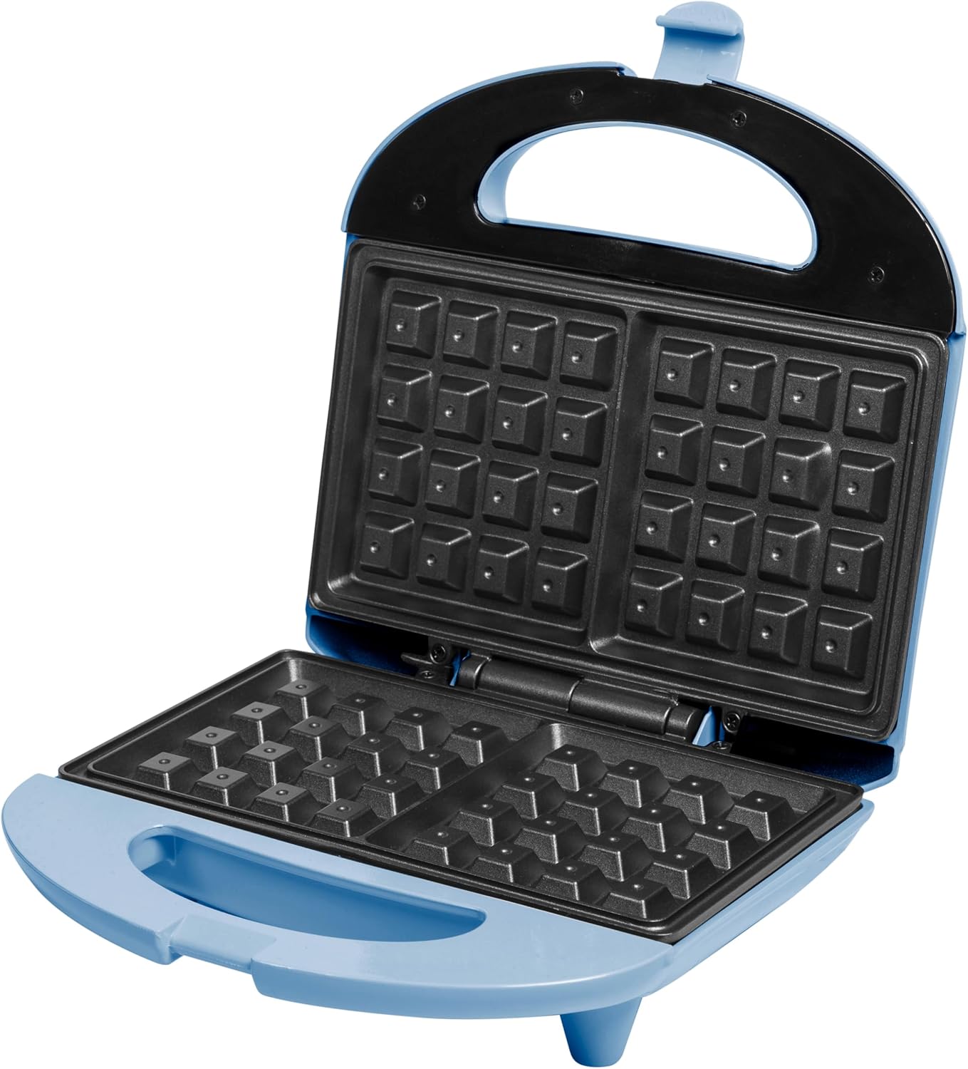 Гофретник Bestron Brussels в ретро дизайн, гофретник за 2 белгийски гофрети с незалепващо покритие и лампа за печене, 700 W, цвят: син