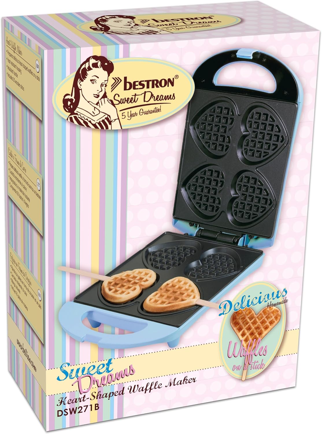 Гофретник Bestron за гофрети във формата на сърце на клечка, Гофретник с незалепващо покритие за гофрети във формата на сърце, Гофретник във формата на сърце, Идеален за детски рождени дни, Великден и Коледа, Цвят: Син