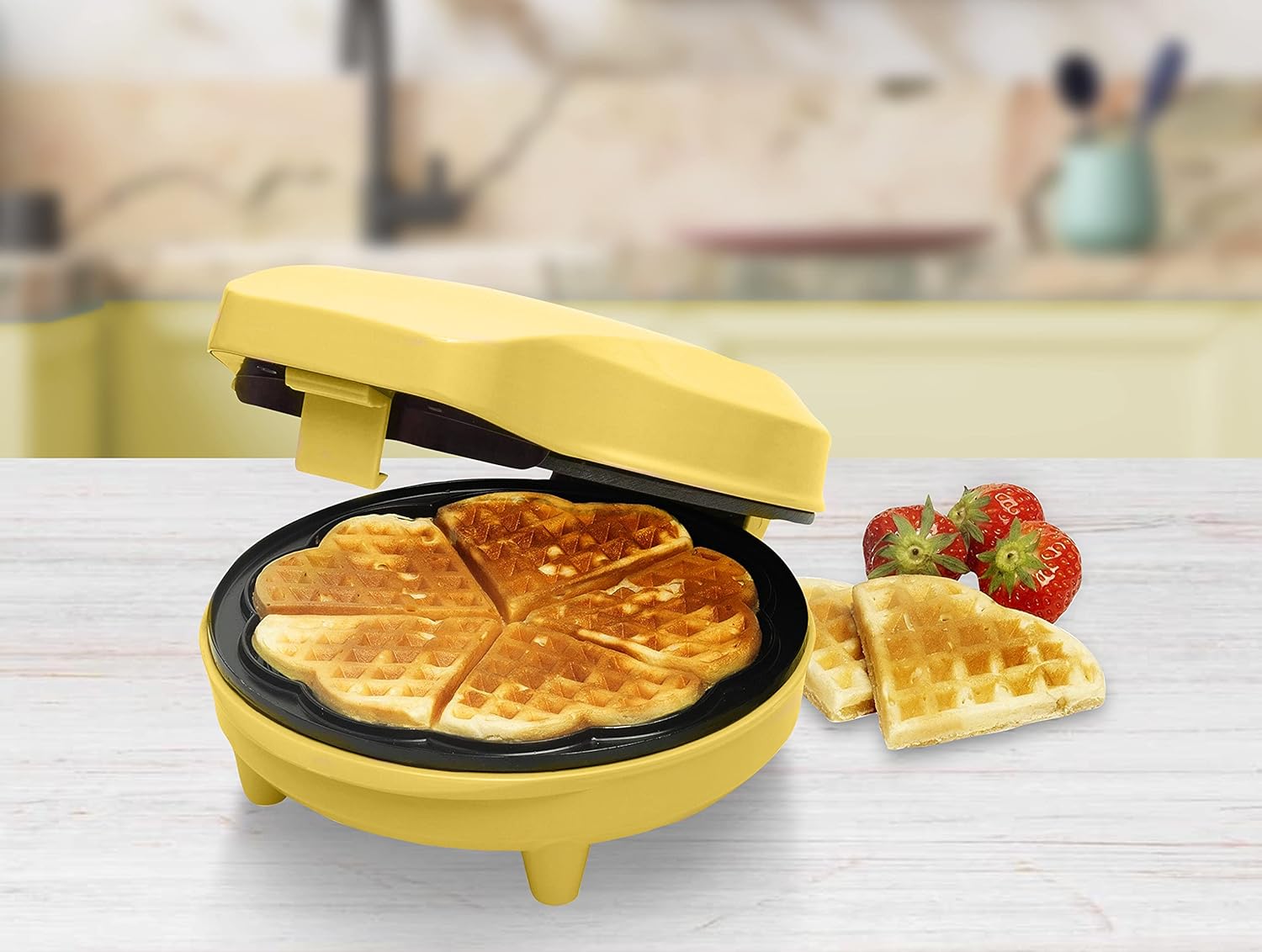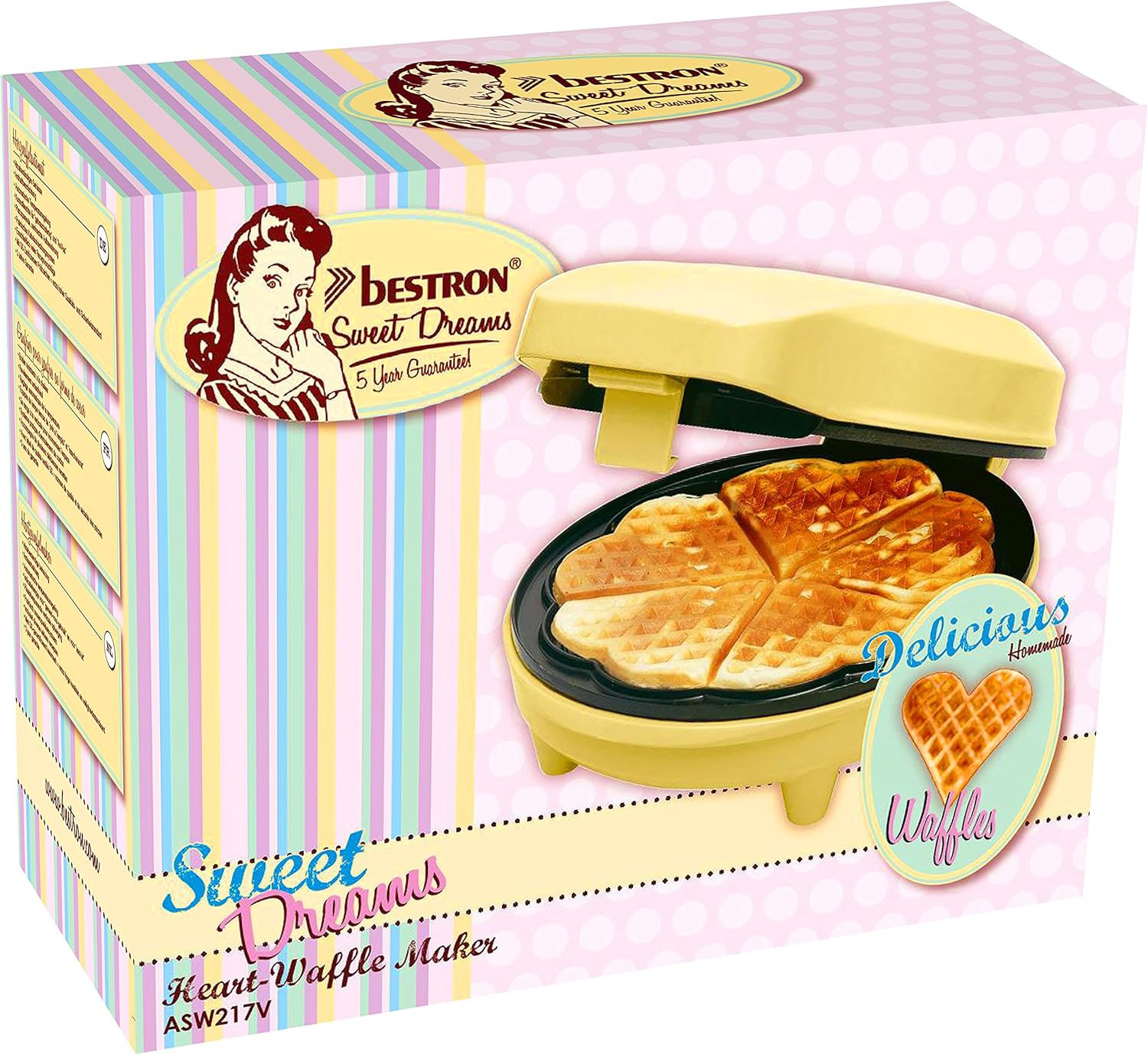 Гофретник Bestron за класически гофрети във формата на сърце, гофретник с незалепващо покритие за гофрети във формата на сърце, ретро дизайн, 700 вата, цвят: жълт