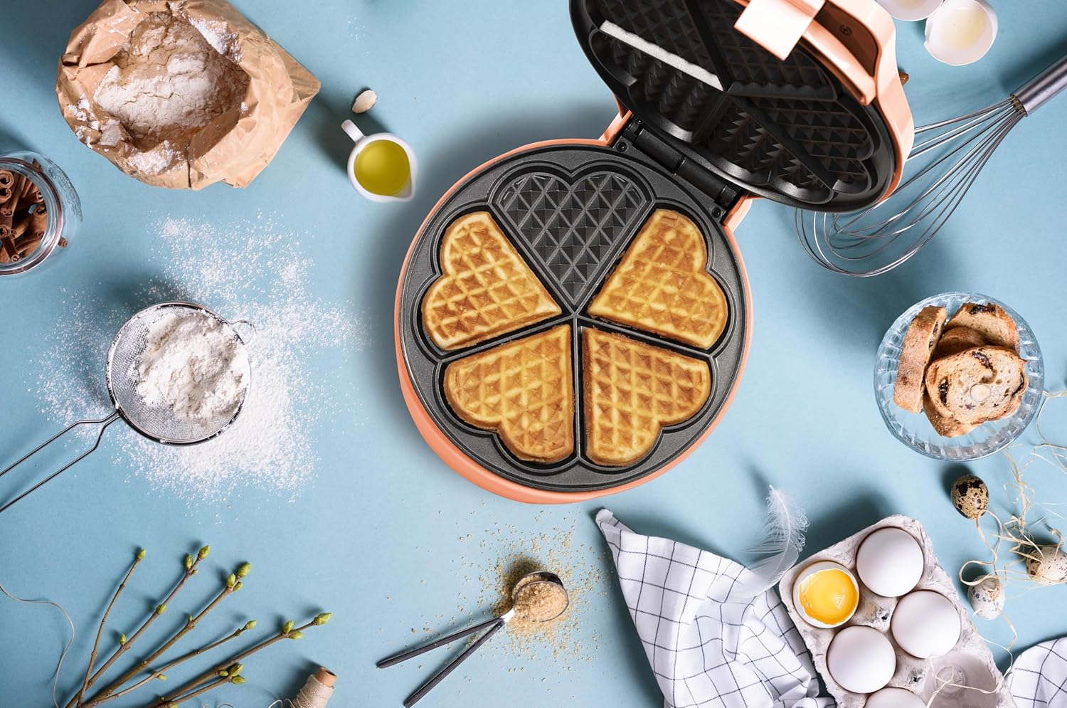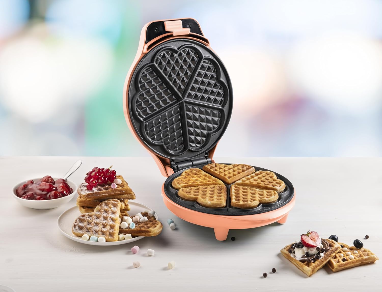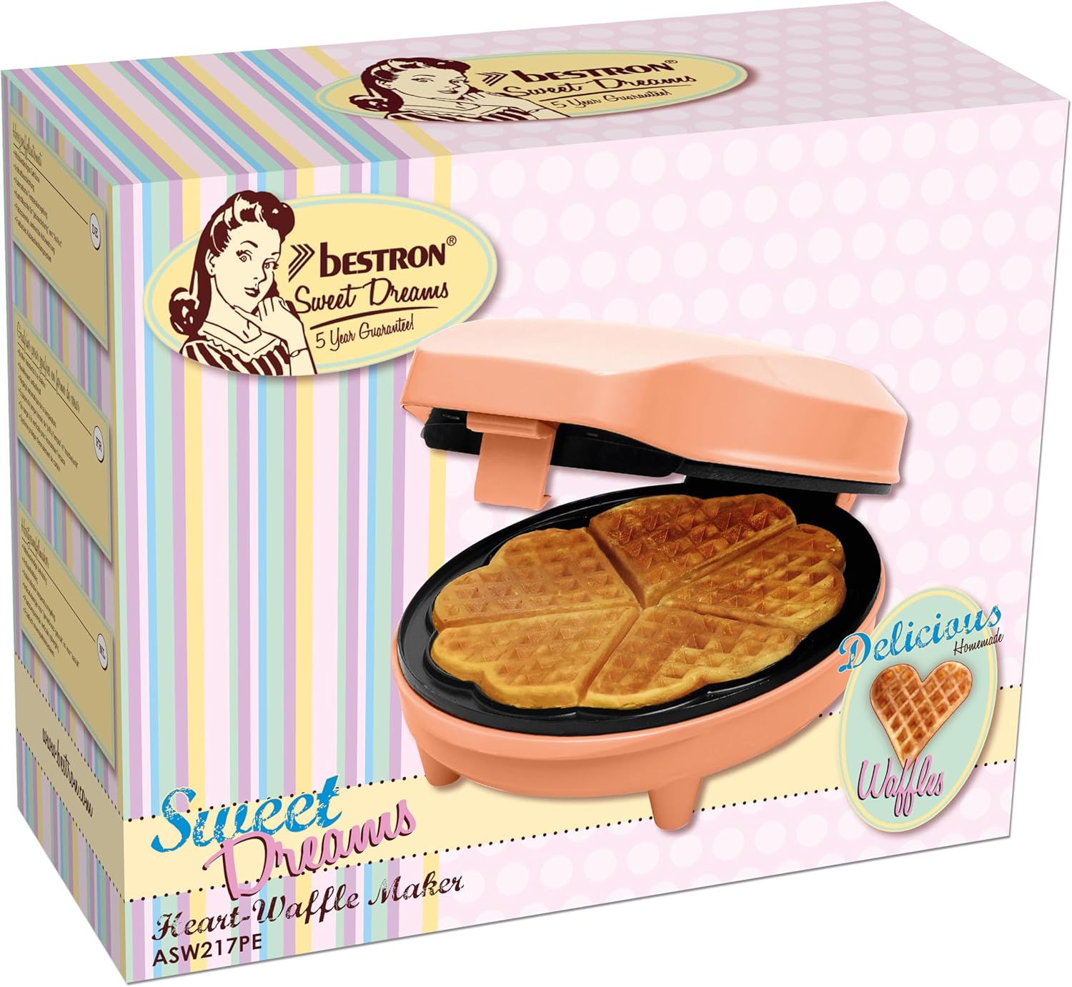 Гофретник Bestron за класически вафли във формата на сърце, гофретник във формата на сърце с незалепващо покритие и лампа за печене, гофретник от колекцията Sweet Dreams, 700 вата, цвят: оранжев