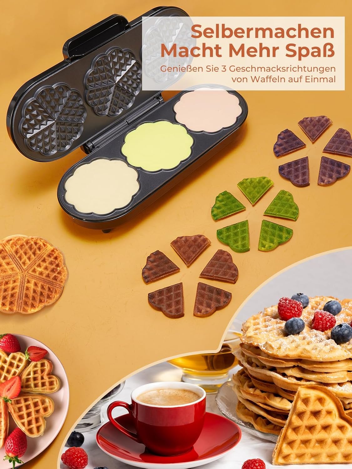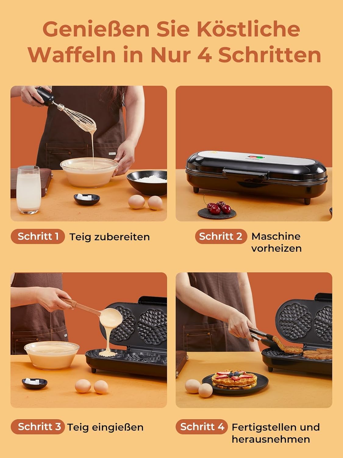 • Идеални за големи семейства: насладете се на 15 пресни и вкусни гофрети с форма на сърце в един процес на печене. Гофретите с форма на сърце са изпечени равномерно златистокафяви, хрупкави отвън и меки отвътре - всяка хапка е удоволствие - идеални за семейни вечери, училищни партита и детски рождени дни.