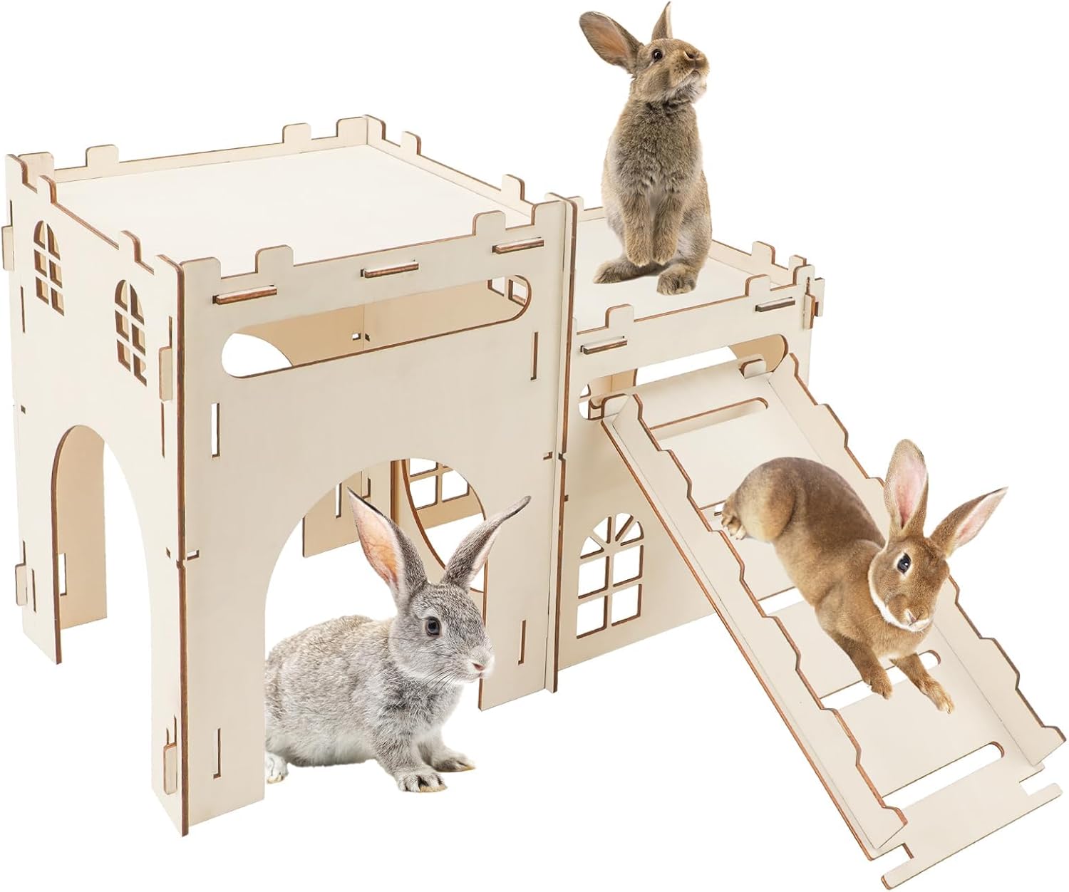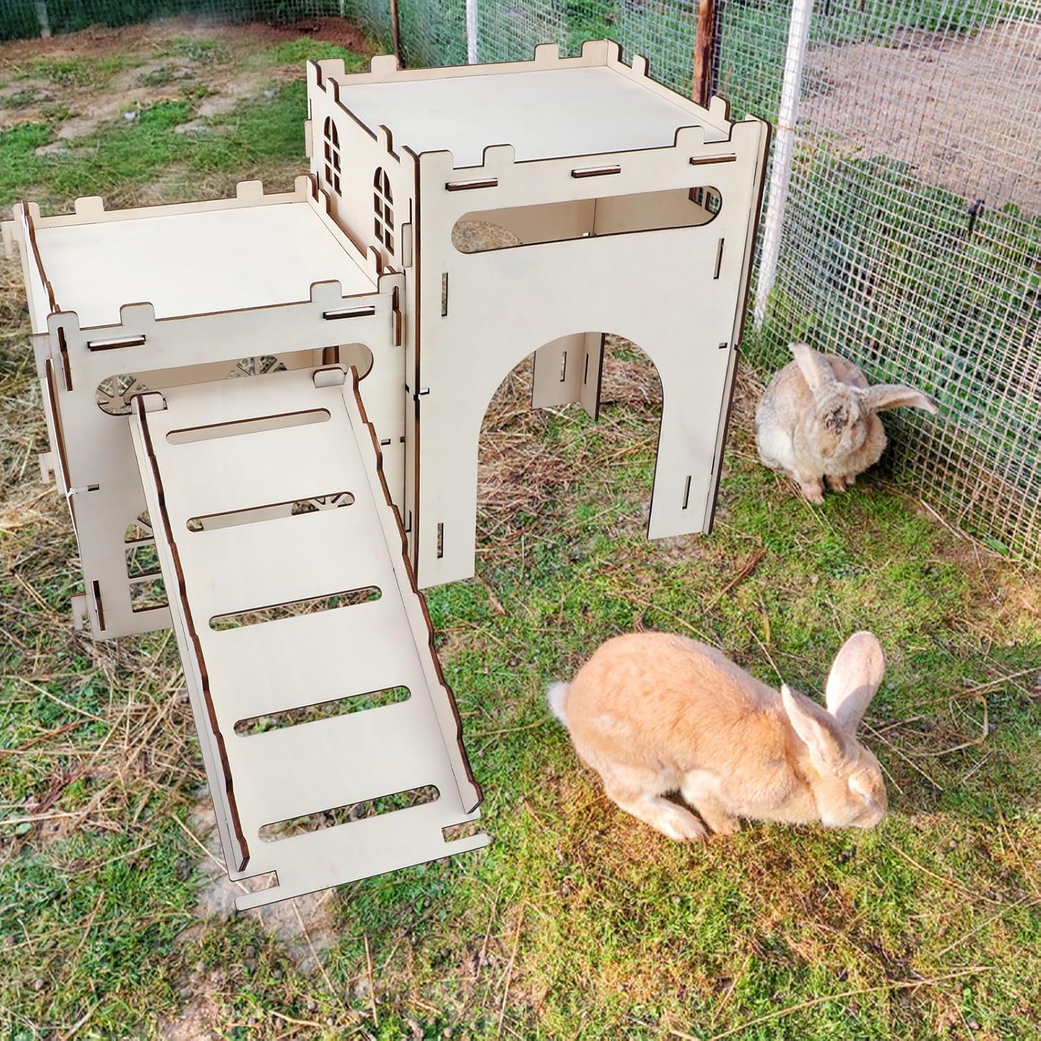 Голяма дървена къщичка за зайци, естествена пещера за зайци, скривалище за зайци, замък за зайци, къщичка за игра, конюшня, дървена ключалка за свързване на зайци, гризачи, морски свинчета.
