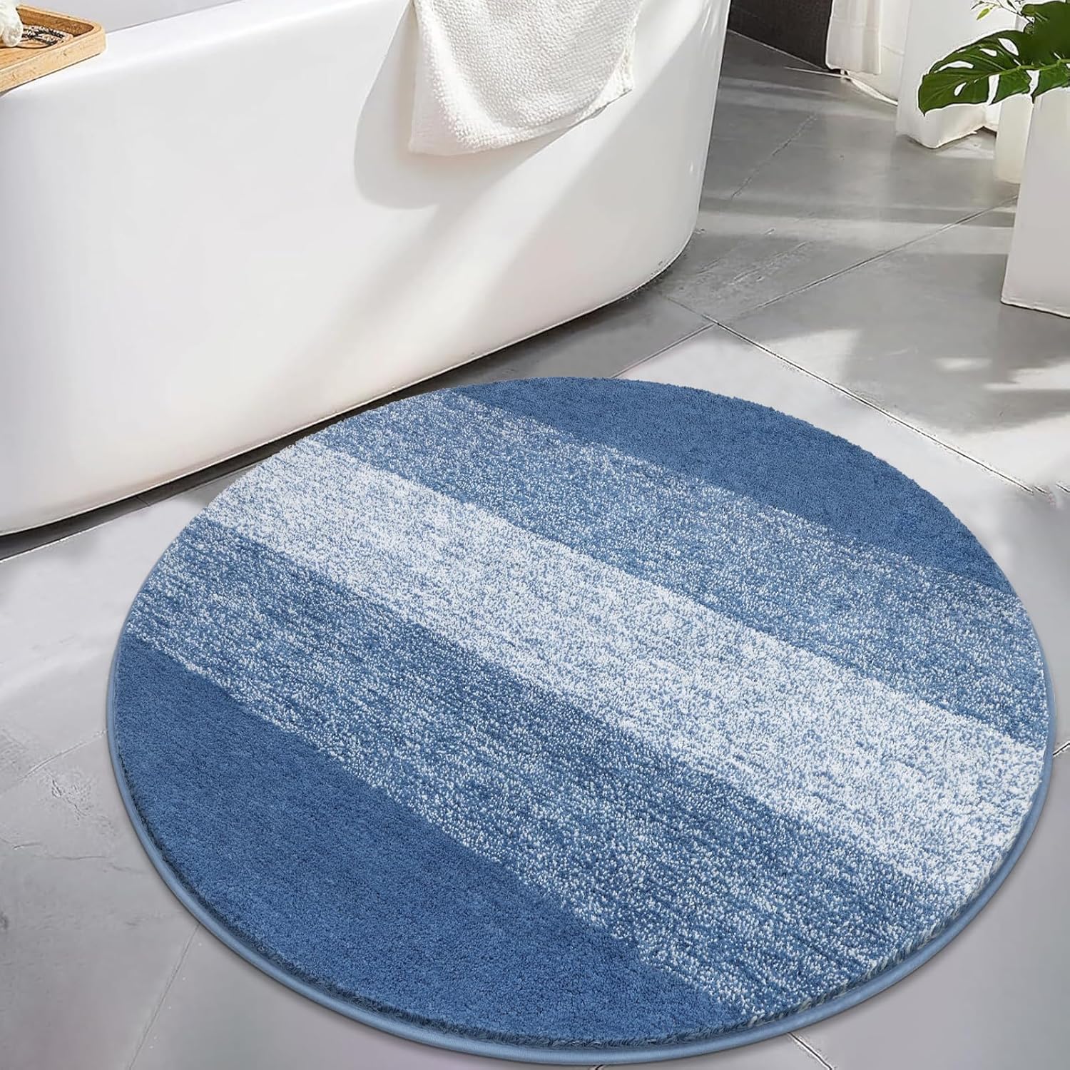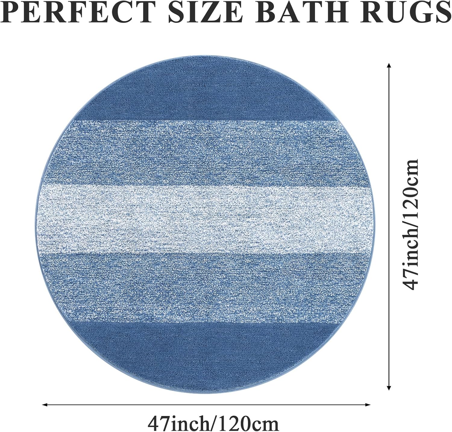 Голяма кръгла постелка за баня, 120 см, синя, мека неплъзгаща се постелка за баня, може да се пере в пералня, килим за баня, водоабсорбираща постелка за баня, постелка за душ