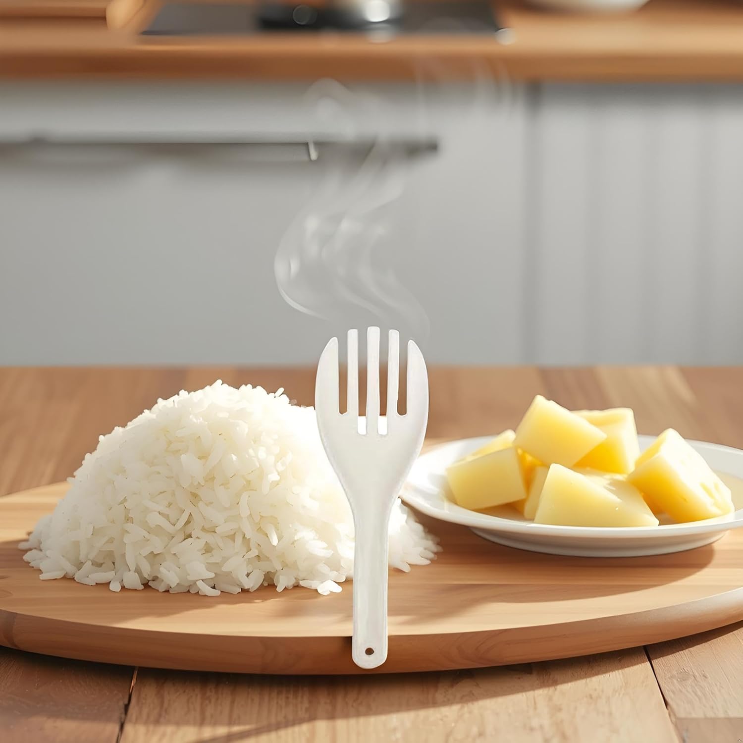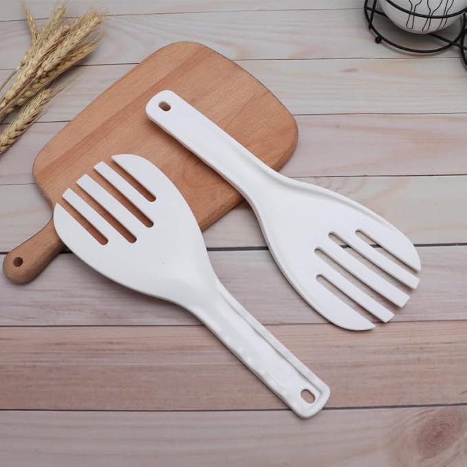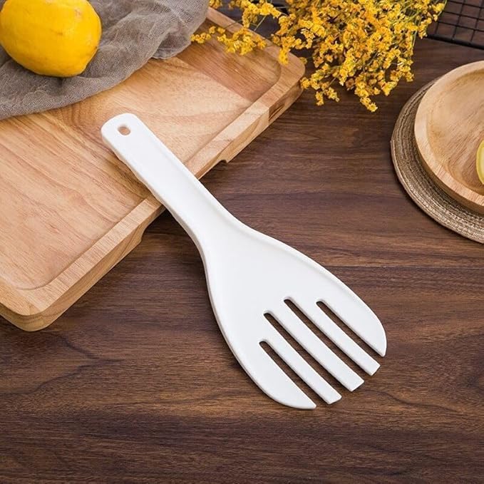 Бялата шпатула за ориз Jumbo с лъжица за сервиране, подобна на вилица, и повдигач за ориз и картофи (27 см, 27 см) е универсален и практичен кухненски инструмент за ефикасно сервиране на ориз, картофи, зеленчуци и други ястия.
