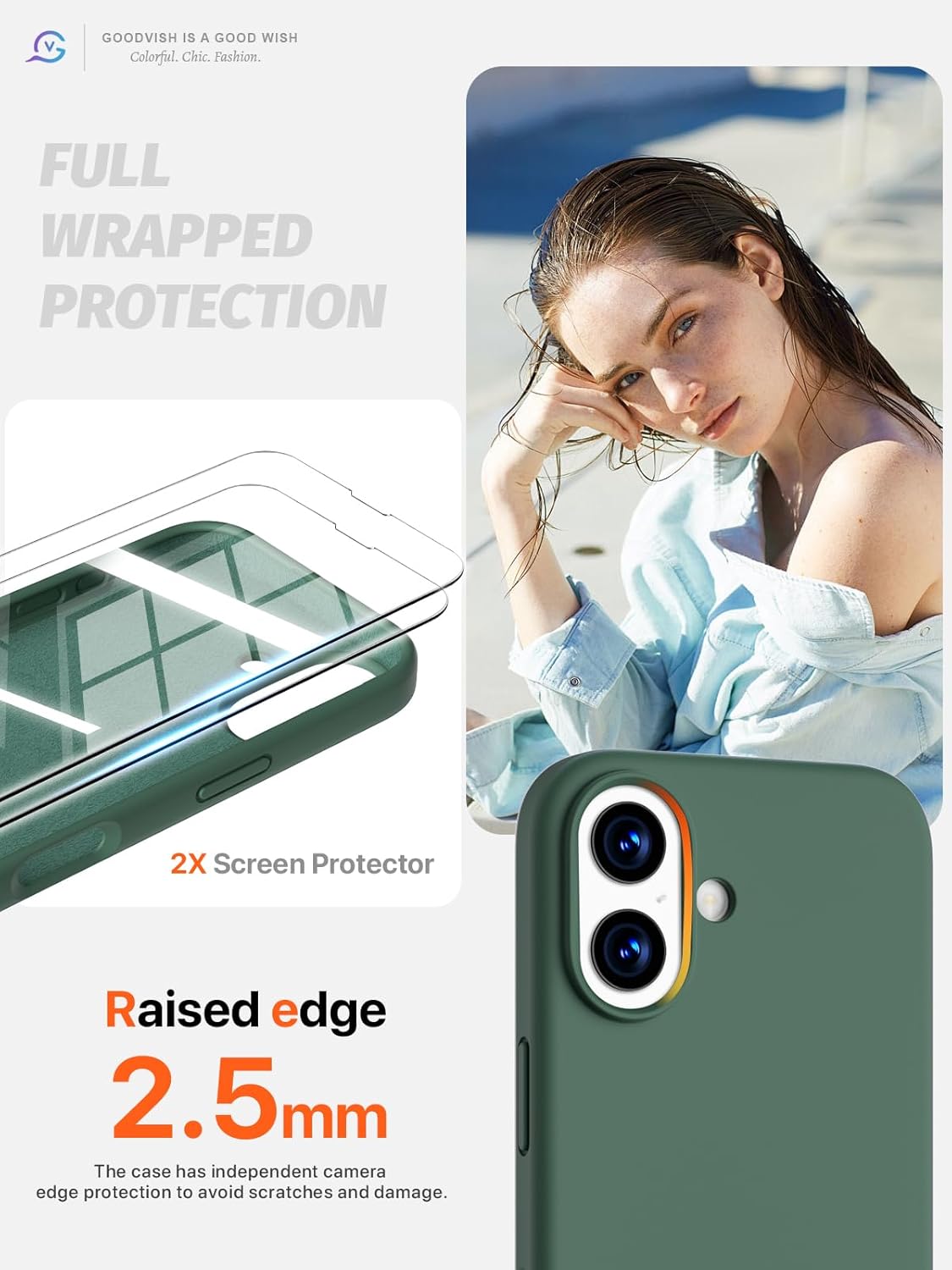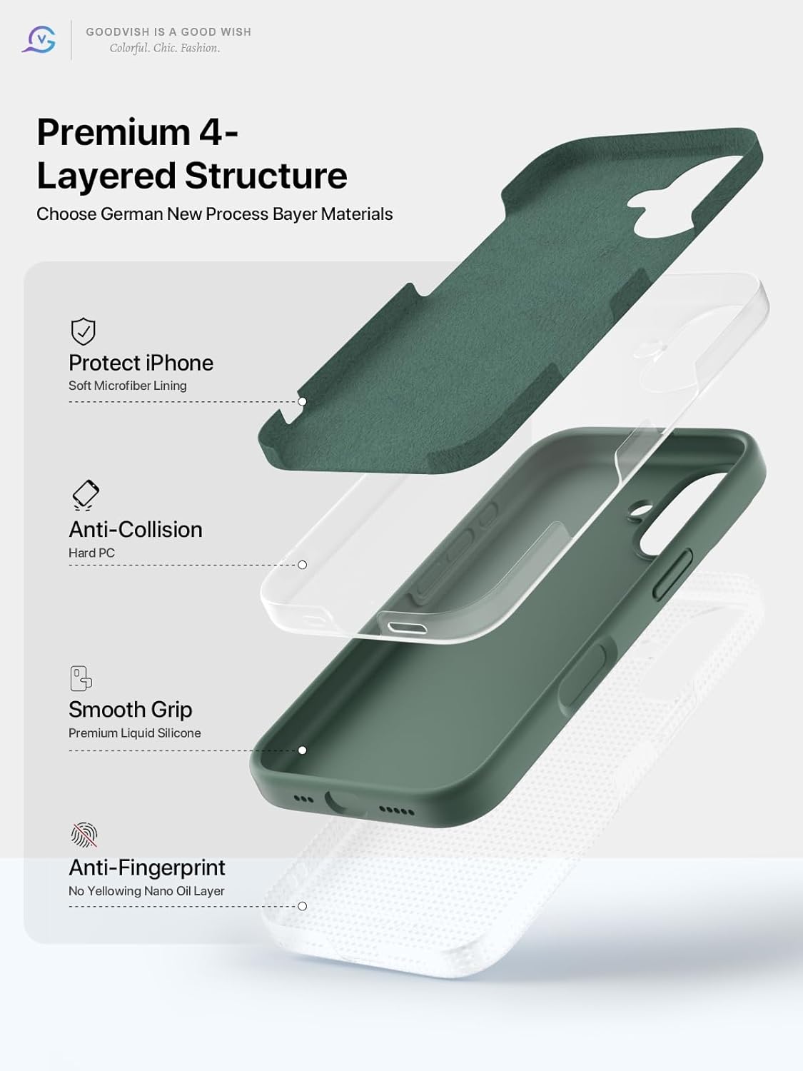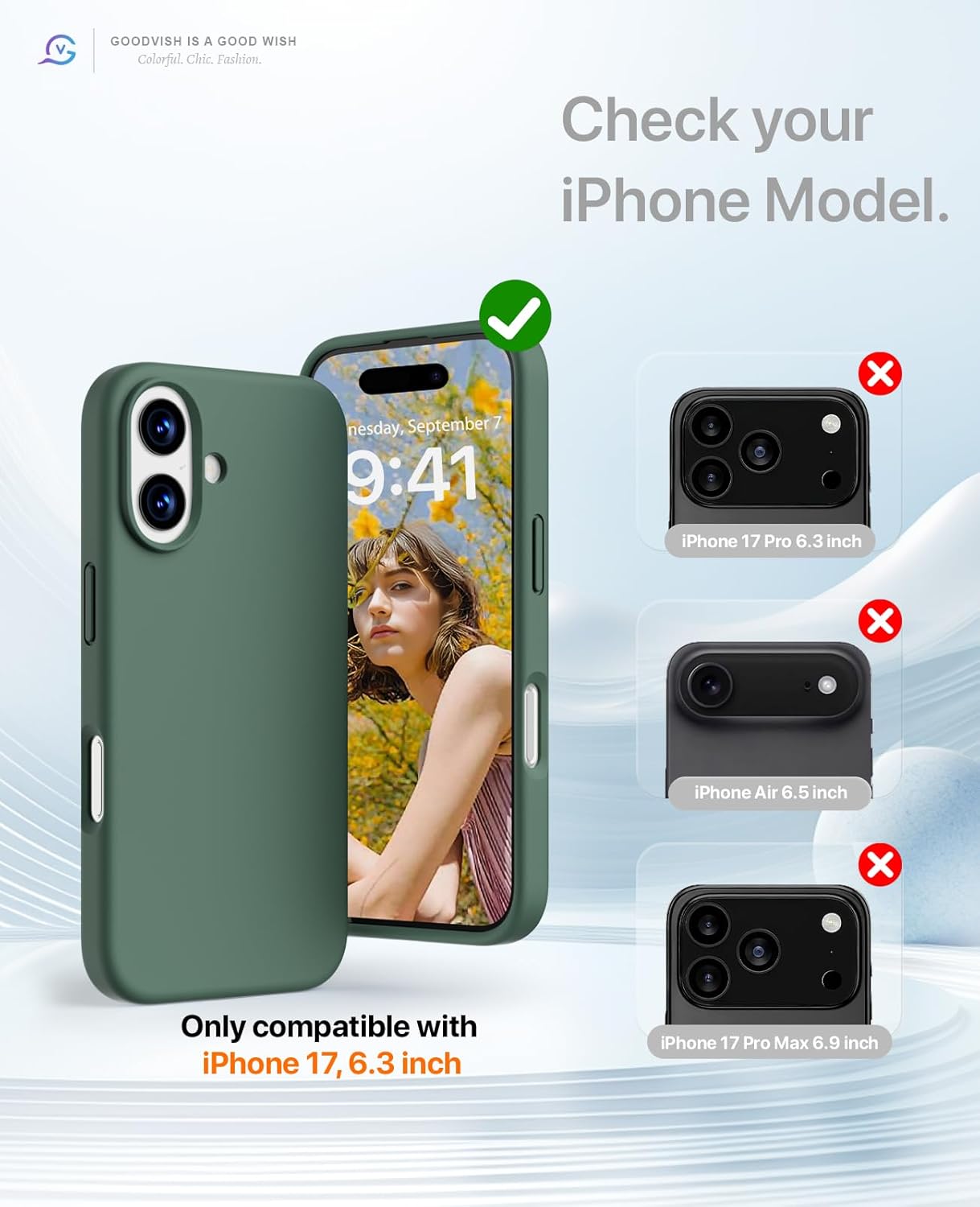 GOODVISH 3-в-1 калъф за iPhone 17, с 2 части защитно фолио от силикон, подобрена мека микрофибърна подплата, драскотини и удари, калъф за мобилен телефон, устойчив на надраскване, удароустойчив защитен калъф