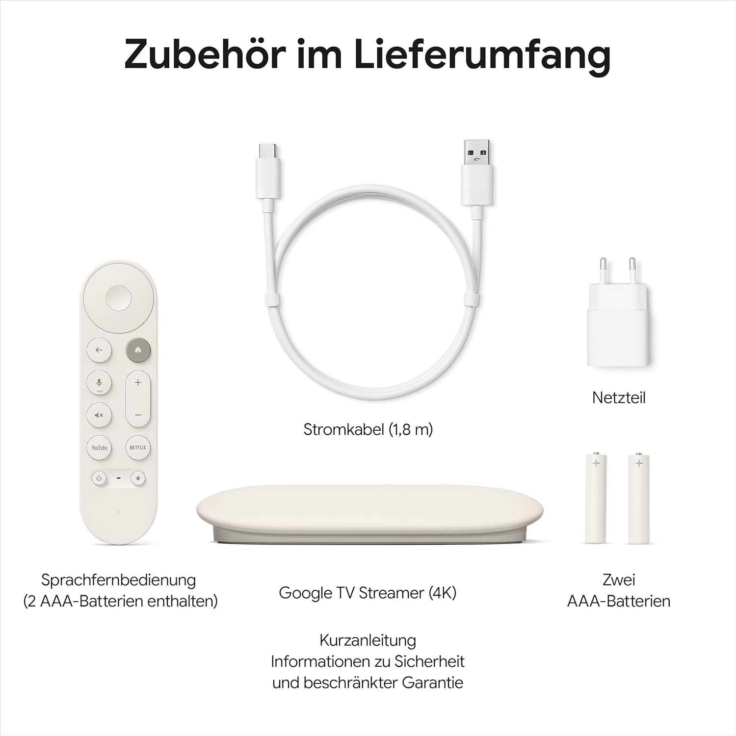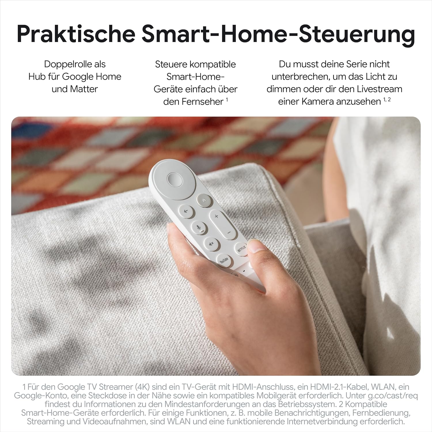 Google TV Streamer 4K - Спокойно забавление чрез бързо стрийминг и дистанционно управление с гласово търсене - Филми, сериали, предавания на живо и Netflix в 4K HDR - 32 GB място за съхранение - Порцелан