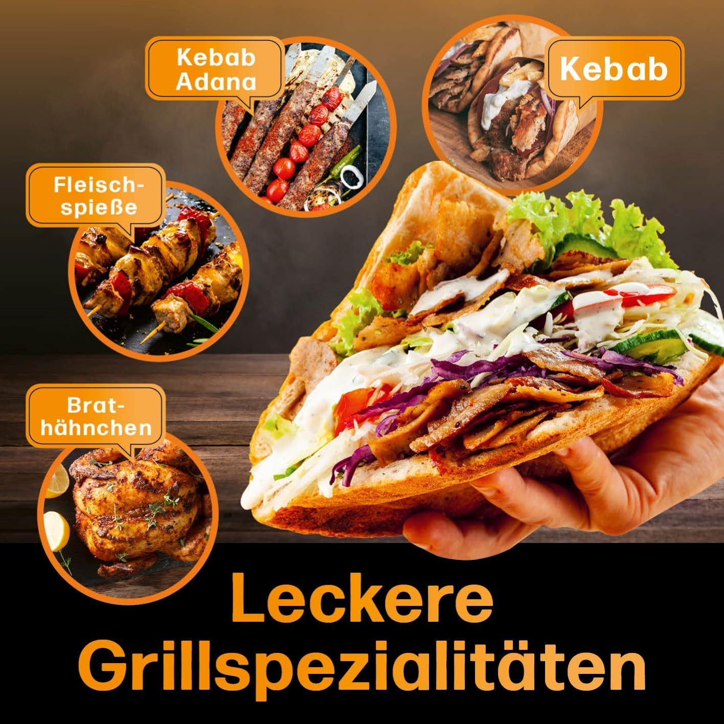 • Дюнер грил за дома: насладете се лесно на автентичния вкус на кебап у дома - с този вертикален настолен грил за сочни, крехки месни, рибни и зеленчукови вариации, с грил за кебап от пилешко или телешко месо, вкусни гироси и много други