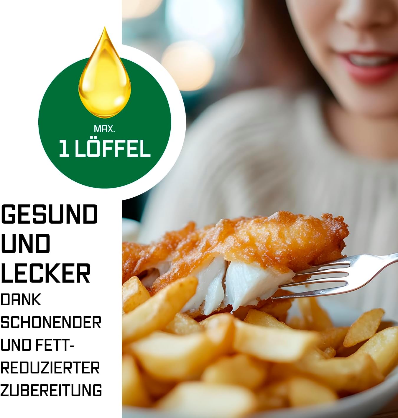 • Бърз и икономичен: фритюрникът е с тъчдисплей, функция таймер и бързо загряване. Той предлага и до 1,5 пъти по-бързо готвене - това ви спестява време при ежедневното приготвяне на пържени картофи, пилешки крилца, зеленчуци и др., а в сравнение с фурната, спестявате и разходи за енергия.