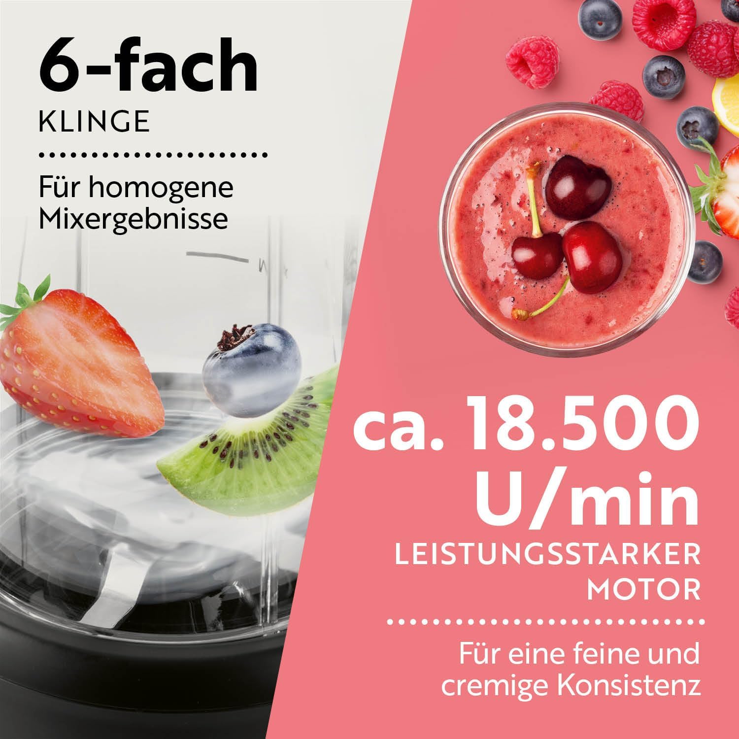• Вашият ежедневен свеж заряд: креативни смутита, шейкове, коктейли, дипове и др. Наслаждавате се на всеки ден? Универсалният мултичопър е подходящ за почти всички кухненски идеи. Можете дори да приготвяте студени сосове и нарязани ядки с високопроизводителния миксер (не е подходящ за кубчета лед).