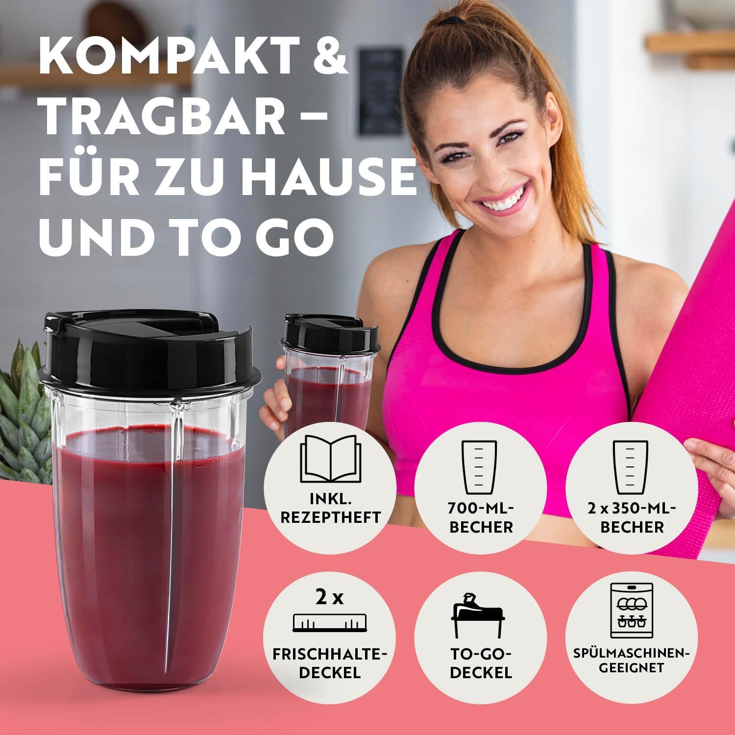 • XXL комплект: комплект от 18 части. Пакетът с аксесоари се състои от практичния мини шейкър и 2 приставки за остриета. Отгоре има 2 различни капака за нарязани ядки, билки и др., херметически затворени капаци и 5 различни чаши за смесване, които правят Mr. Make magic универсален помощник във вашата кухня.