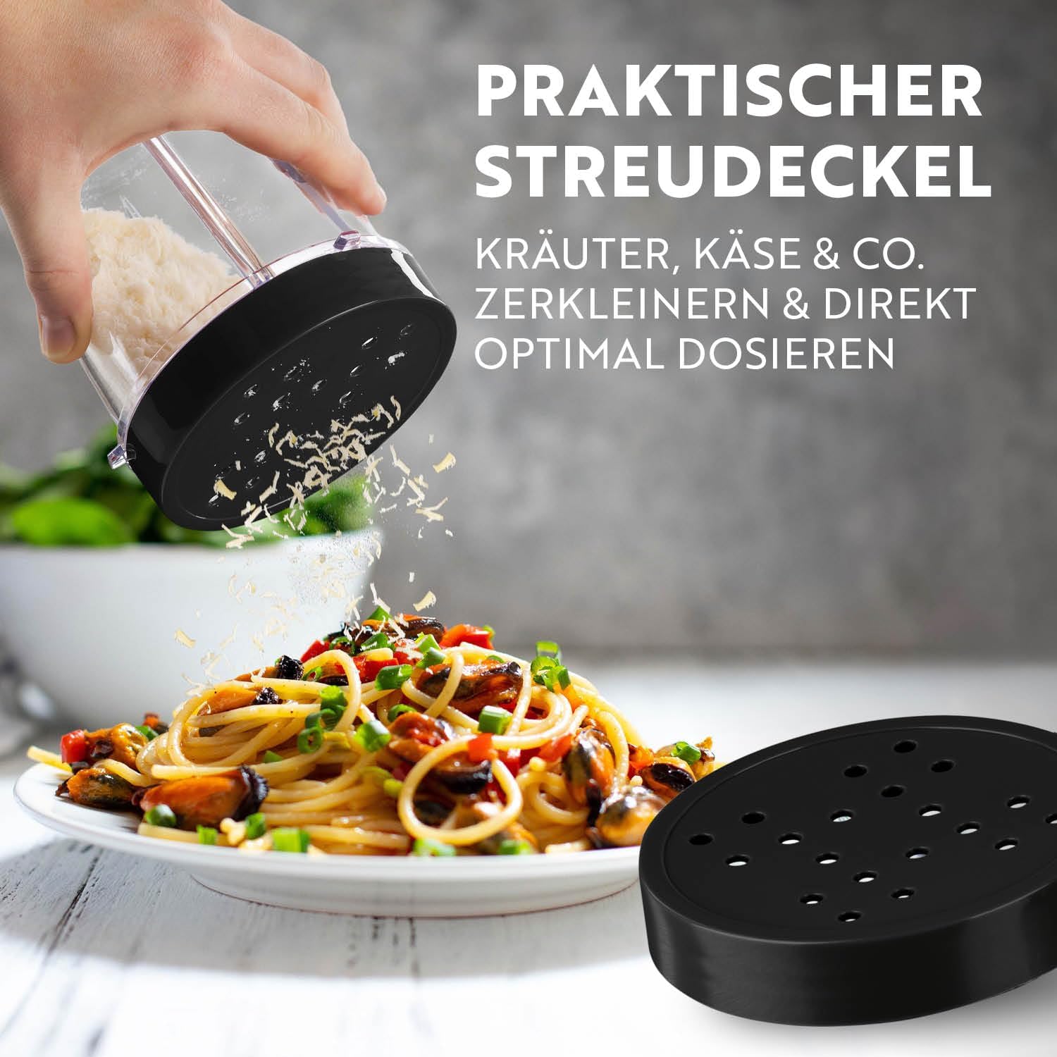 • Вашият ежедневен свеж заряд: креативни смутита, шейкове, коктейли, дипове и др. Наслаждавате се на всеки ден? Универсалният мултичопър е подходящ за почти всички кухненски идеи. Можете дори да приготвяте студени сосове и нарязани ядки с високопроизводителния миксер (не е подходящ за кубчета лед).