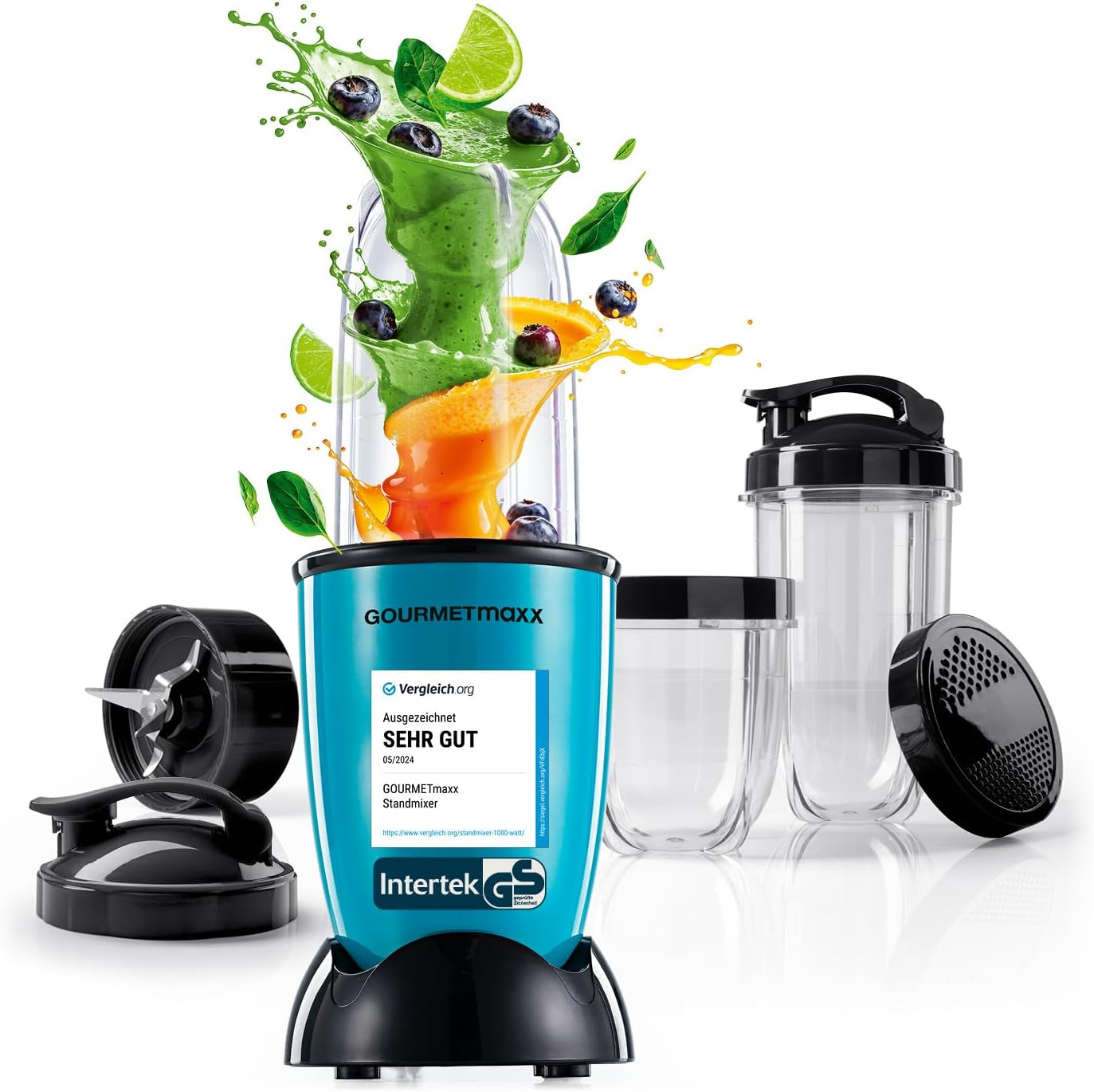 GOURMETmaxx Mr. Magic Миксер с 4 части, машина за смутита с мощност 400 W и капацитет 500 мл, компактен блендер с капак, практичен за шейкове, дипове, сосове и други, лесен за почистване и многофункционален