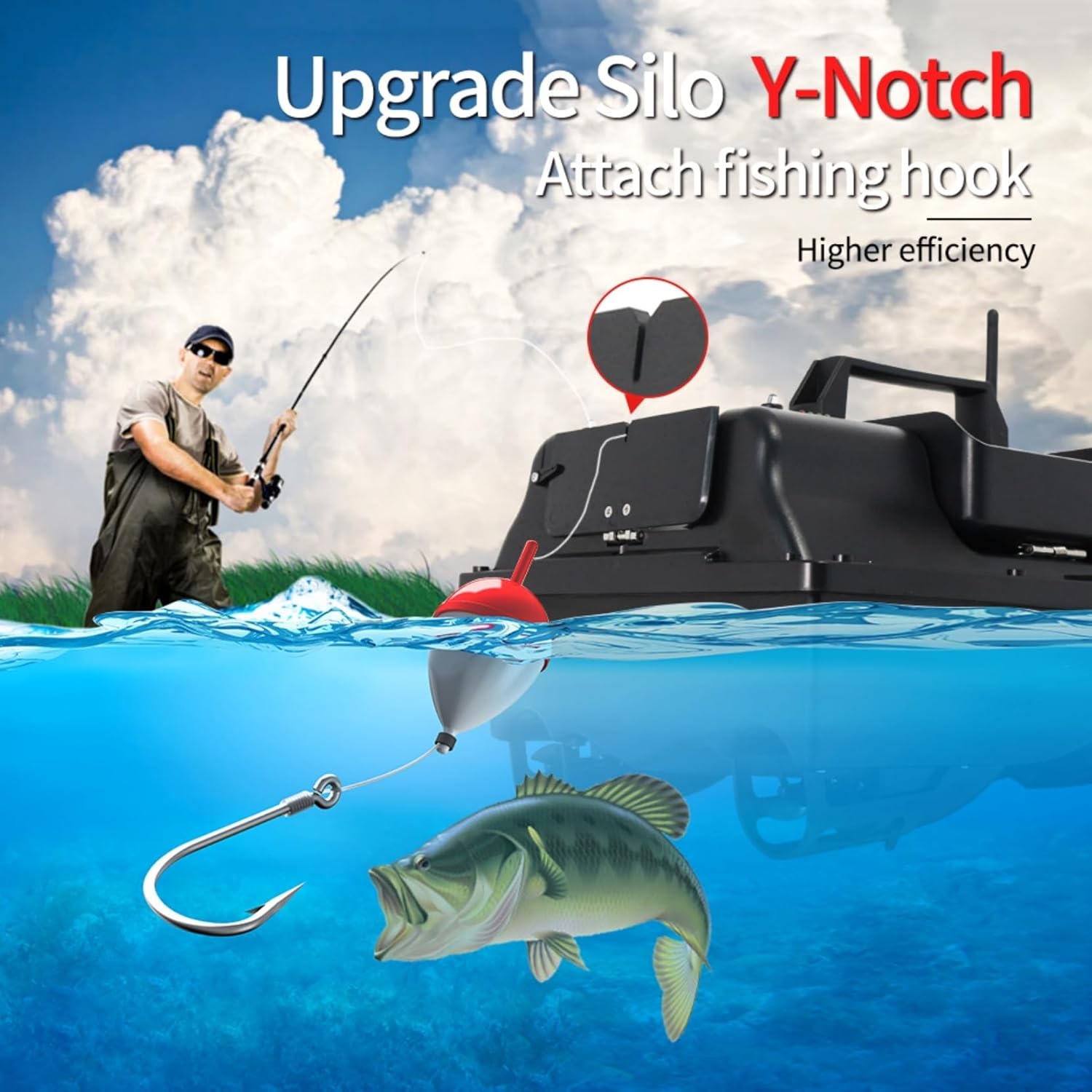 • Може да контролира стръвта на индикатора: 3 контейнера за стръв могат да се контролират независимо, което предотвратява еднократното освобождаване на различната стръв и постига многоточково разположение, а също така има канали за куки за фиксирано доставяне.