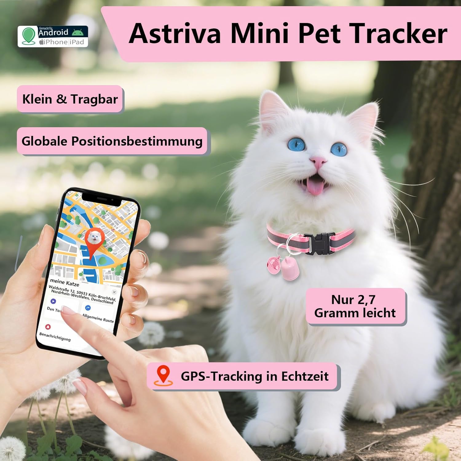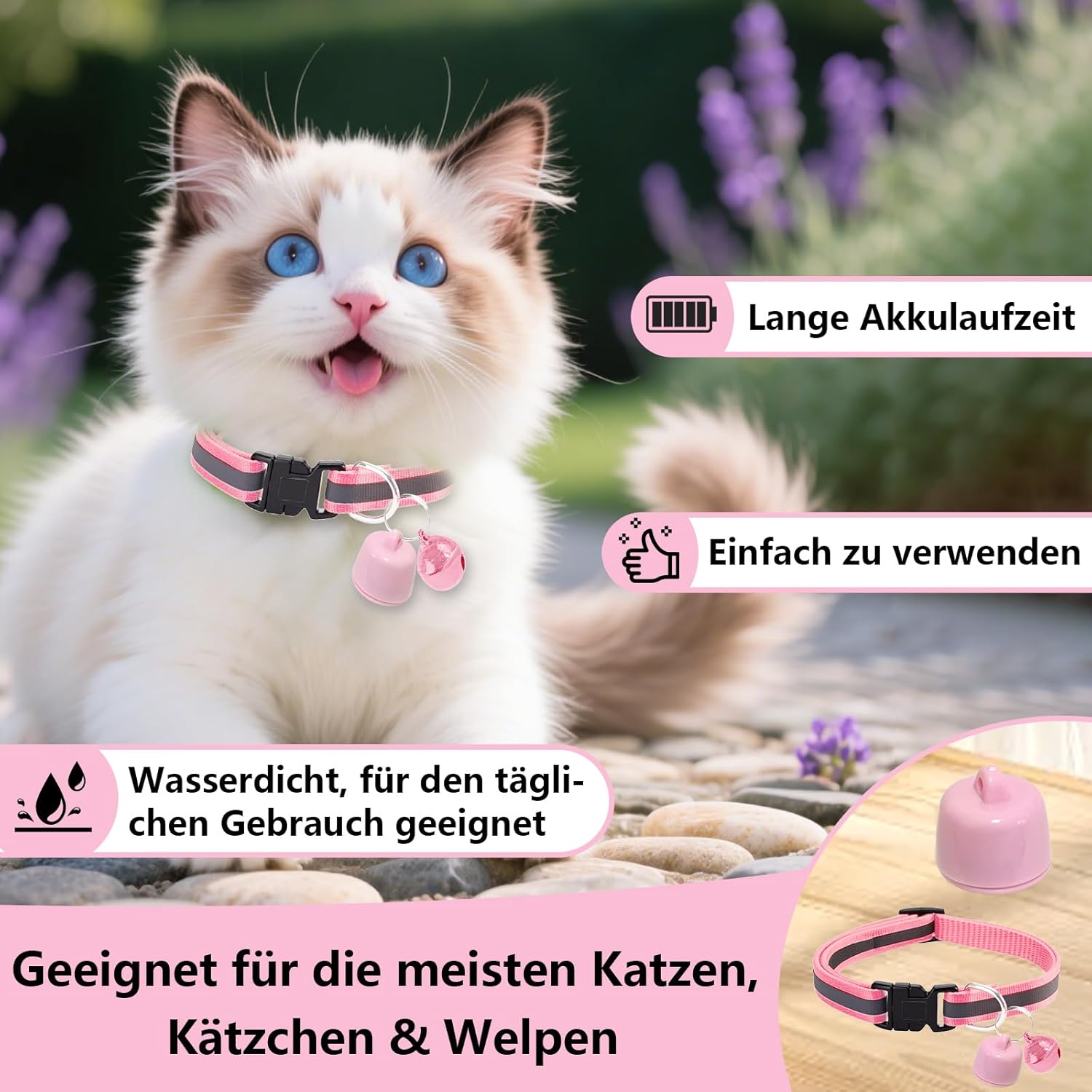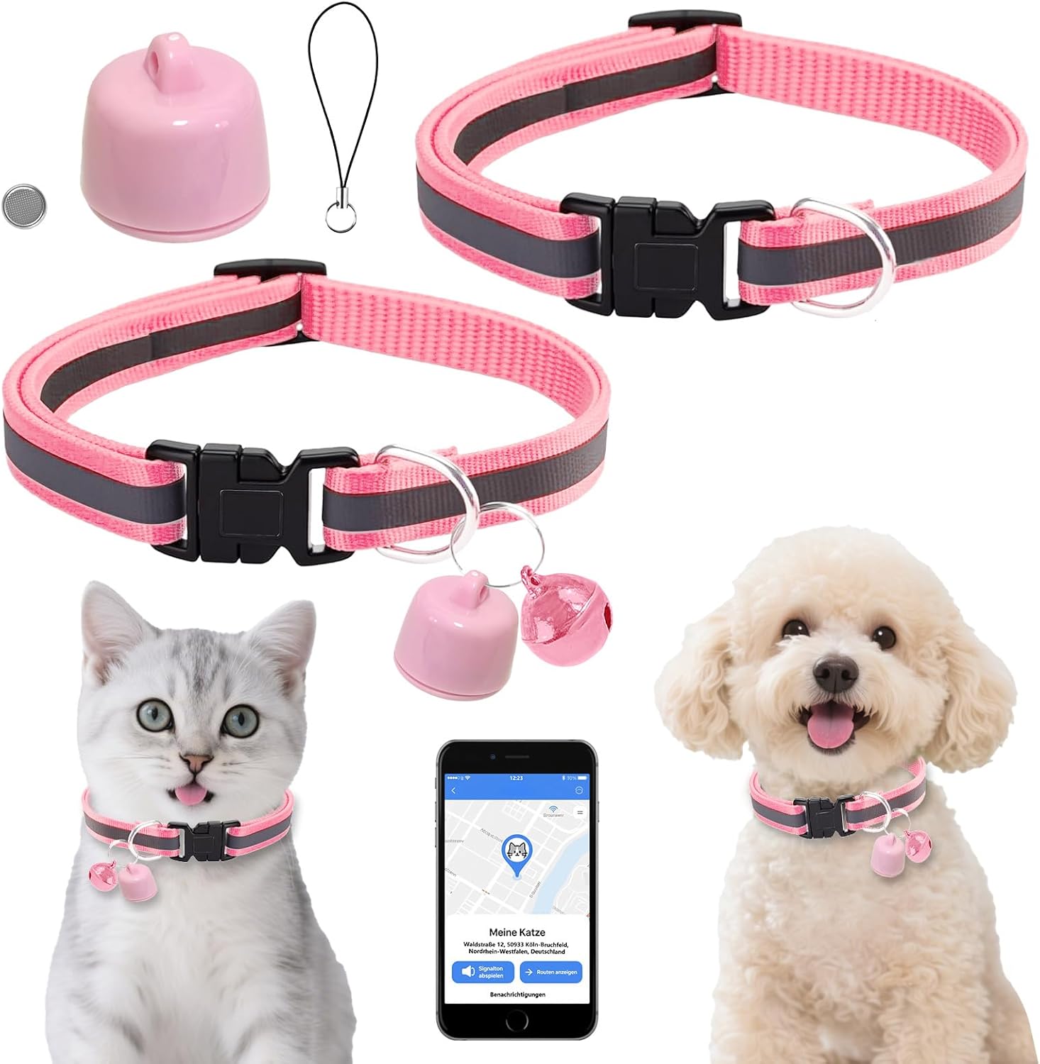 GPS тракер за котки, съвместим с iOS и Android, проследяване на местоположението в световен мащаб, GPS тракер за котешка каишка (не се изисква абонамент), мини тракер за домашни любимци за котки (розов)