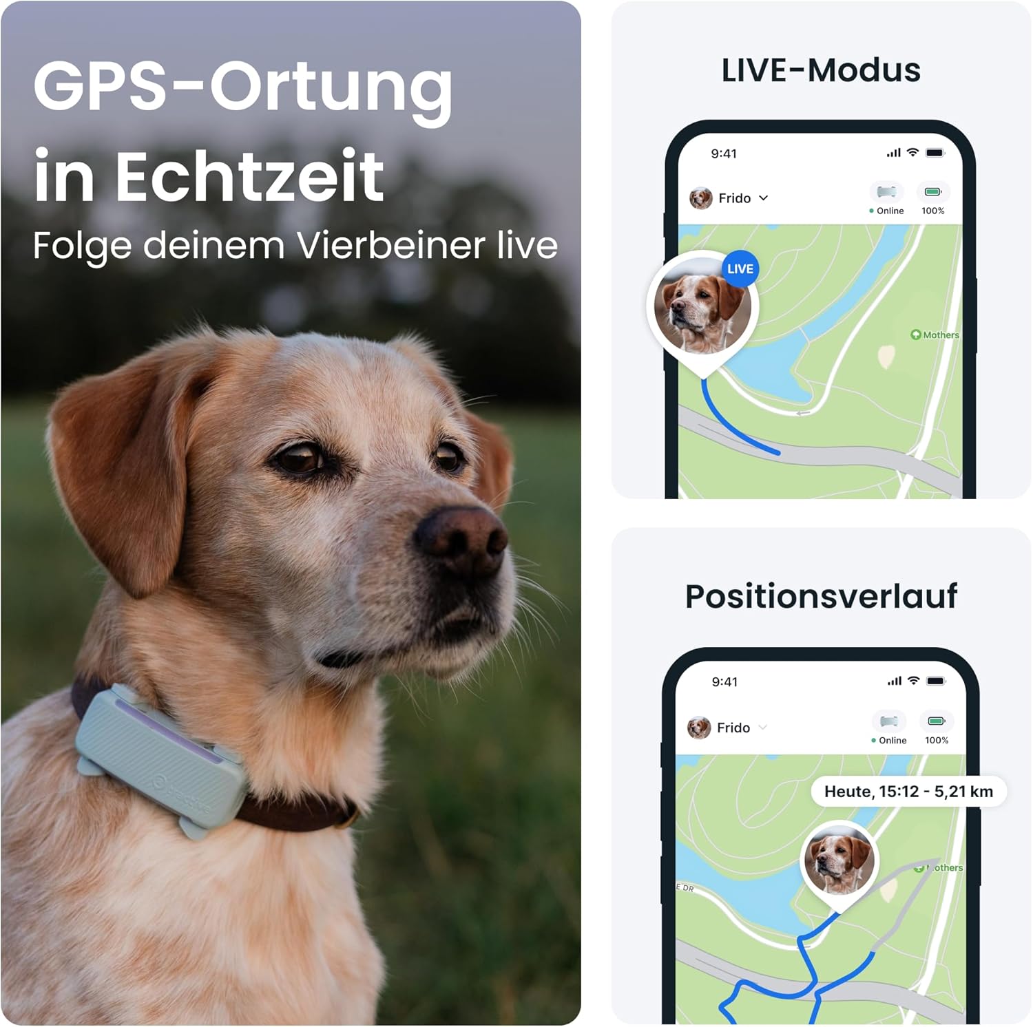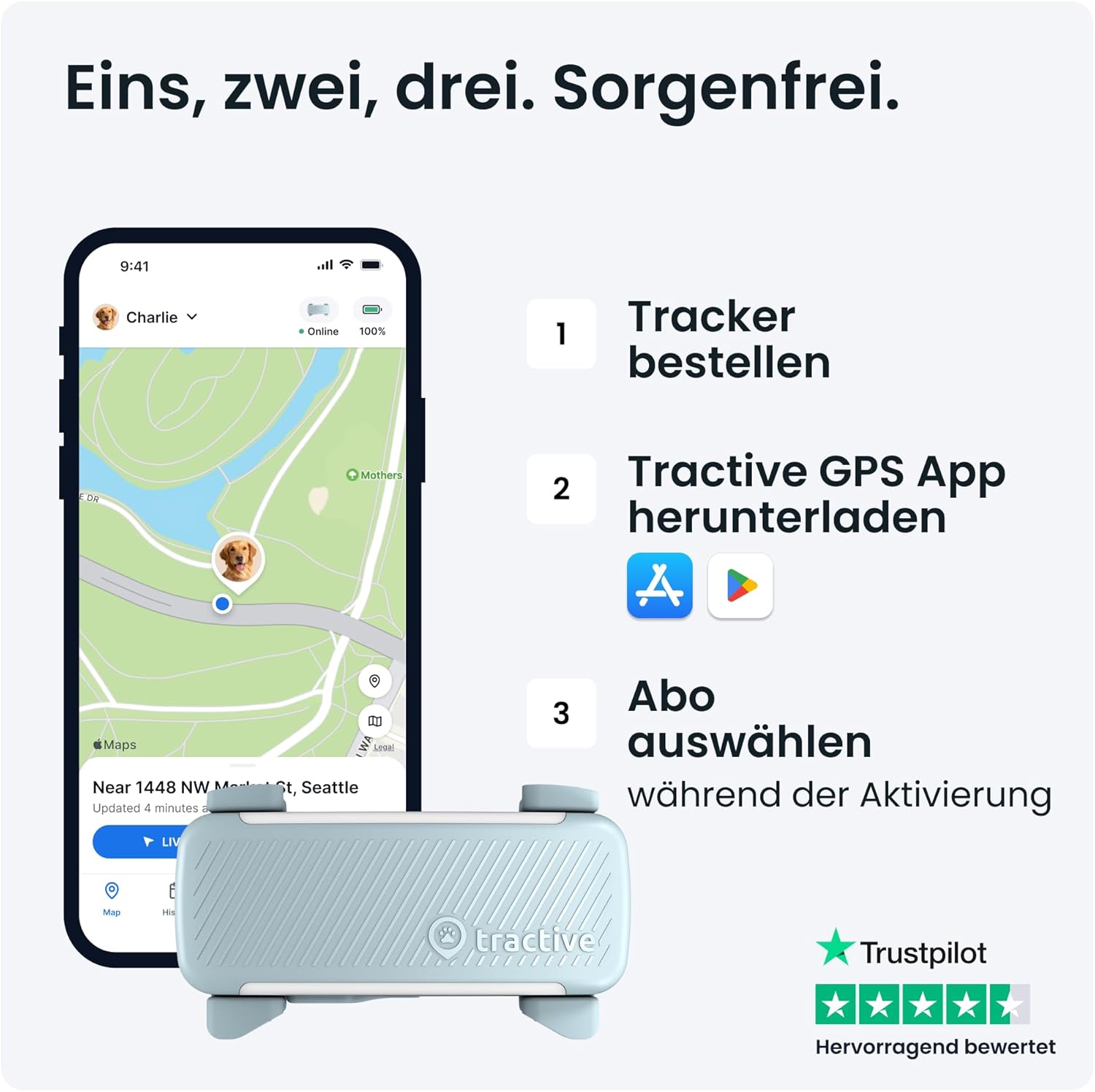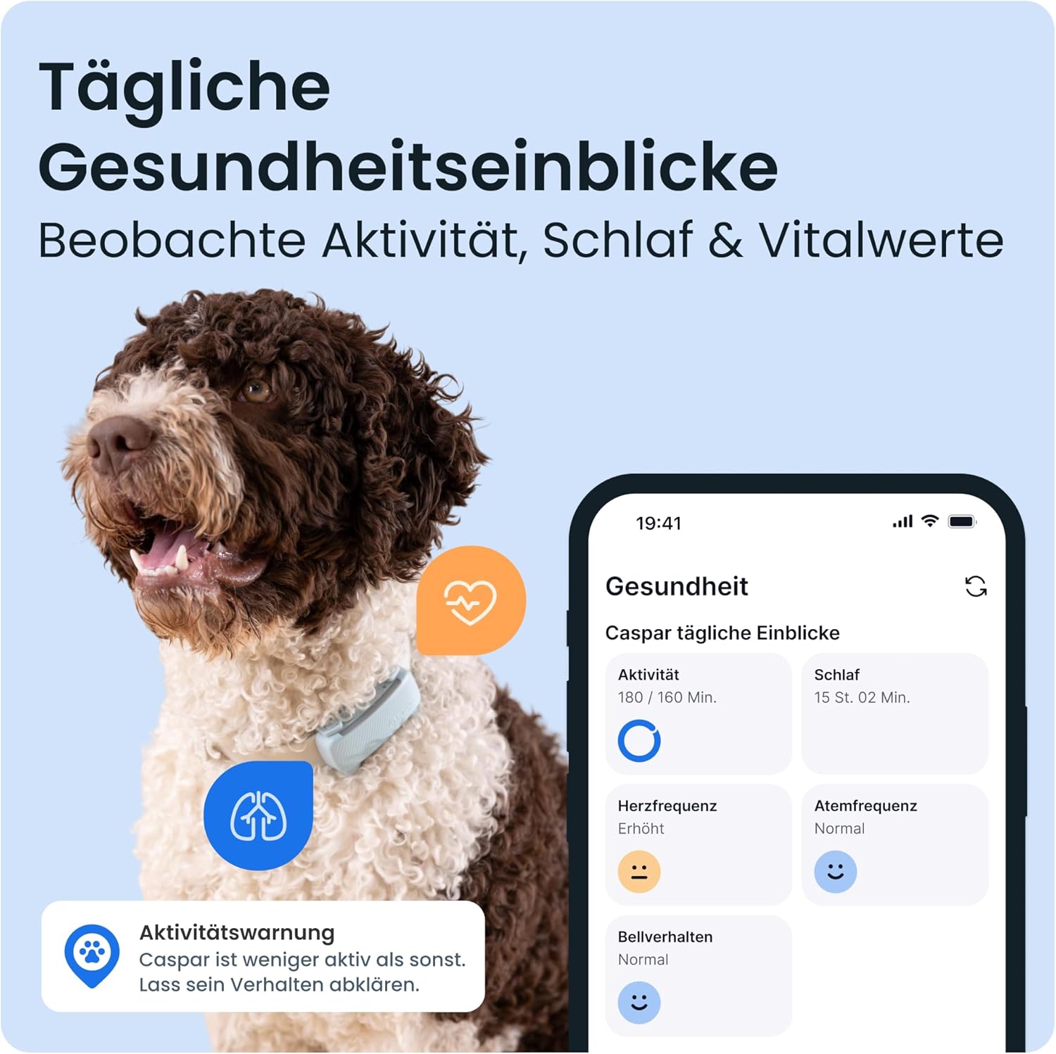 GPS тракер за по-умни кучета Tractive | Модел 2025 | GPS проследяване на живо | Аларма за бягство на куче и здравни предупреждения | Мониторинг на жизнените показатели | Препоръчано от Мартин Рютер (Mint)