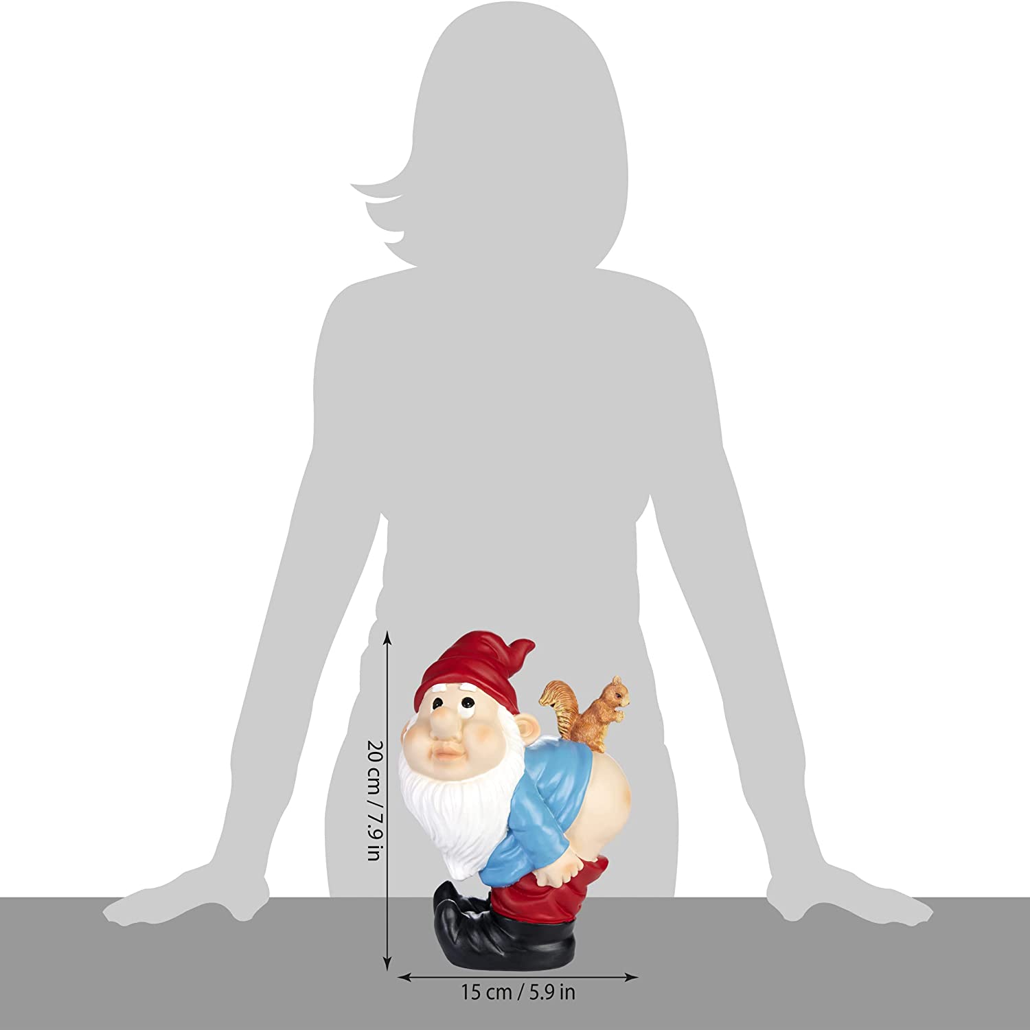 • Устойчив на атмосферни влияния материал на статуята на градинския гном и мощните цветове я правят популярен подарък.