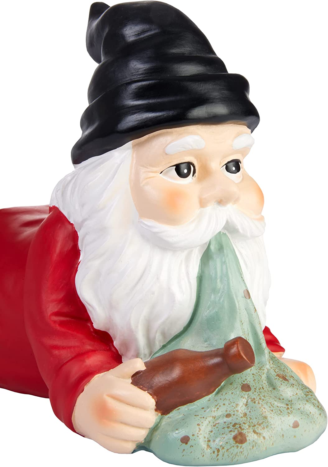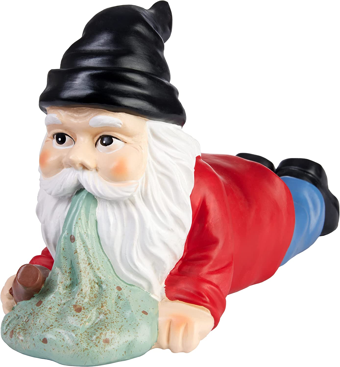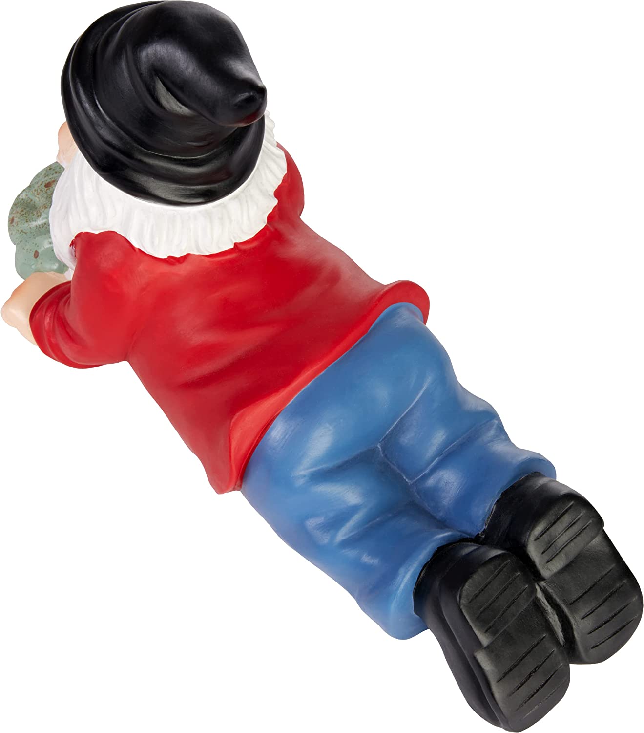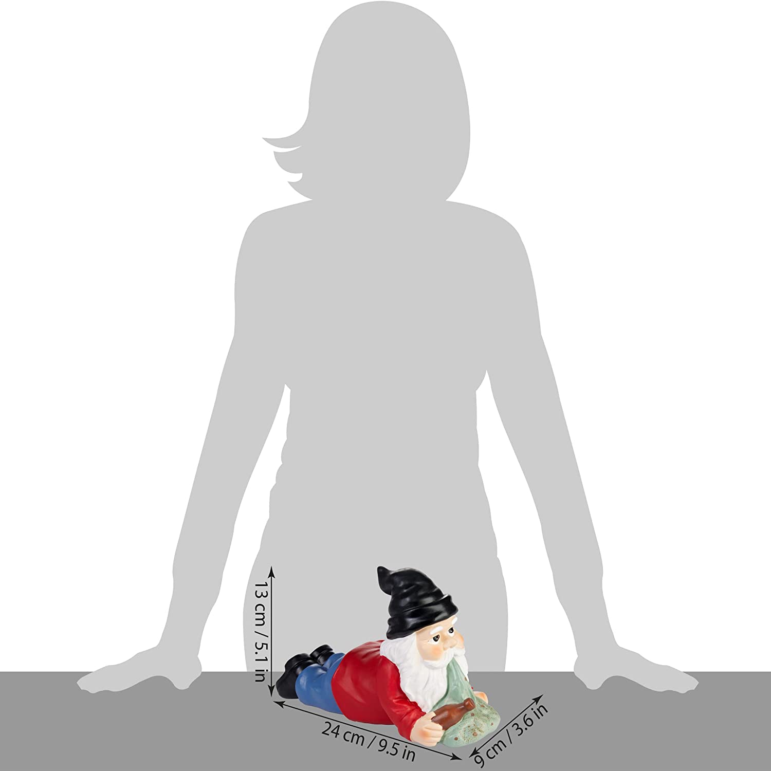 • Този гном е пил твърде много - след 10-та бира вече не може да се държи на краката ви. Това не можеше да бъде избегнато и той започна да шайби. Издръжливият, устойчив на атмосферни влияния материал на статуята на градинския гном и мощните цветове я правят популярен подарък за пиещите бира.
