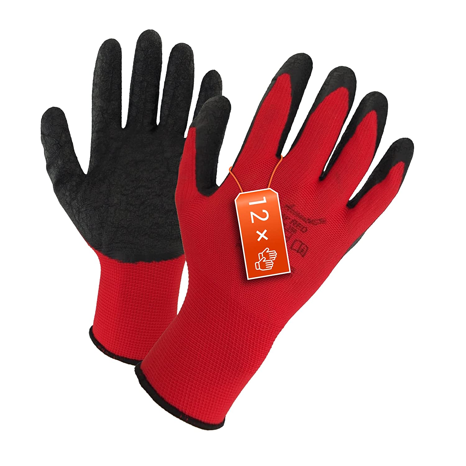 Градински ръкавици WS-Pro, Размер M, Латекс, Дишащи, Устойчивост на бактерии, Неплъзгащи, 12 чифта, Червено-черни