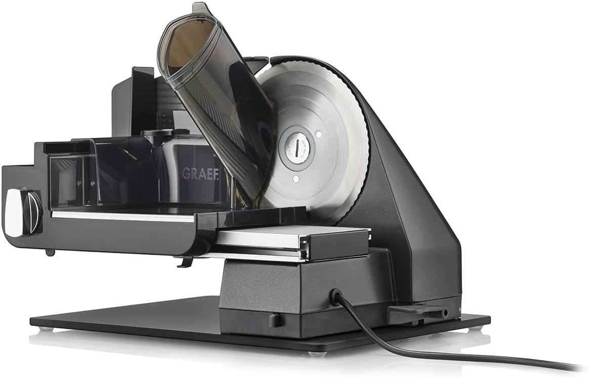 • Прецизни разрези - Универсалният назъбен нож от неръждаема стомана (диаметър 170 мм) осигурява перфектни разрези, независимо дали става въпрос за твърди корички хляб или меко сирене. Благодарение на безстепенно регулируемата дебелина на рязане (0-20 мм), както тънки като вафла, така и рустикални филийки могат да се режат без усилие.