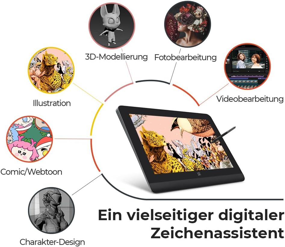 • Работи безпроблемно с различни системи и софтуер: Съвместим с Windows 7 (или по-нова версия), macOS 10.10 (или по-нова версия), Android (USB3.1 DP1.2), Chrome OS 88 (или по-нова версия) и Linux. Поддържа популярен софтуер за дигитално изкуство като Adobe Photoshop, Illustrator, SAI, CDR, GIMP, Krita, MediBang, FireAlpaca, Toonboom, Maya, Blender3D и др.