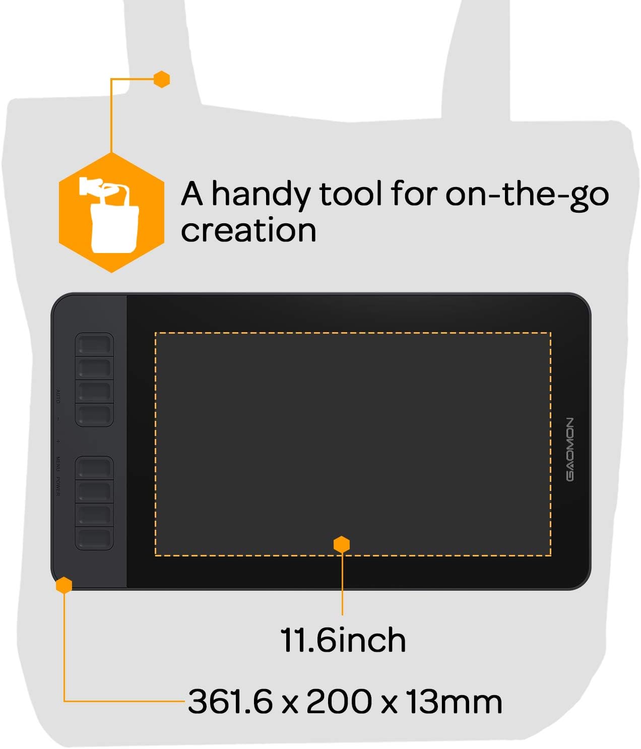 Графичен таблет GAOMON PD1161 с дисплей, таблет за дигитален дизайн с писалка без батерия, накланяне, 8 клавиша за бърз достъп за рисуване, дизайн и редактиране, 11,6-инчов таблет за рисуване за Mac и Windows PC
