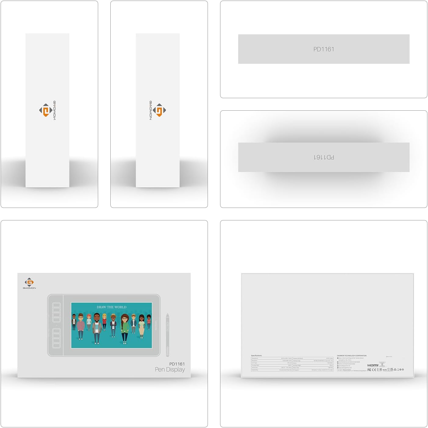 • [11,6-инчов 1080P HD IPS монитор] Графичният таблет GAOMON PD1161 с дисплей разполага с HD IPS монитор с резолюция 1920x1080, цветова гама 72% NTSC (100% SRGB) и работна площ от 256,32x144,18 мм. Този висок клас монитор осигурява по-ярко изображение.