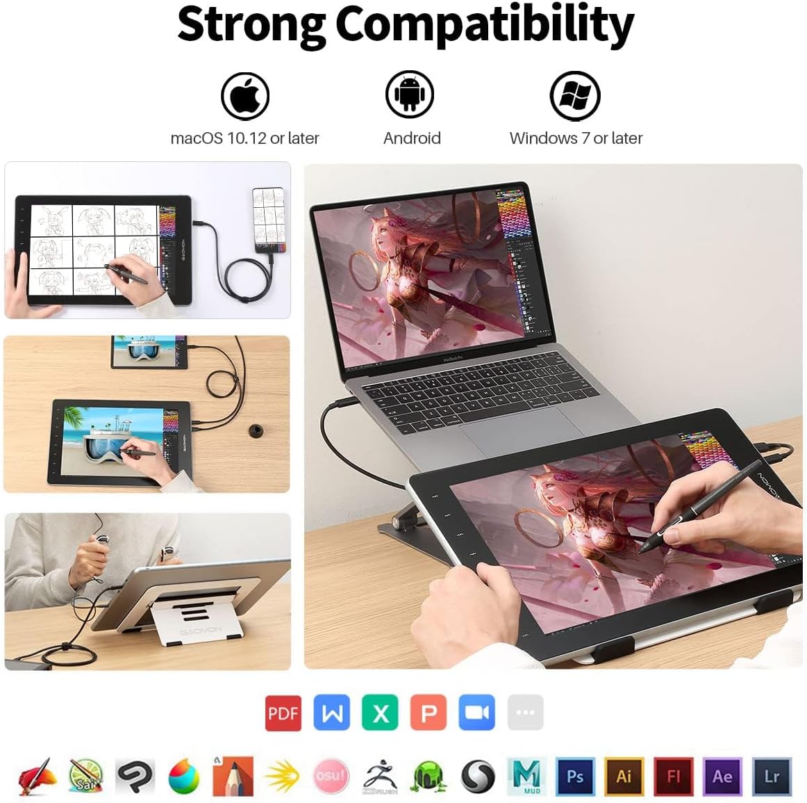 • Графичният таблет GAOMON PD2200 е съвместим с Windows 7 и Mac OS X 10.11 и по-нови версии. Графичният таблет GAOMON PD2200 с екран е подходящ за всички популярни програми като Photoshop, Illustrator, ZBrush, Krita, MediBang, Paintstorm Studio, Painter, Affinitz Foto и др.