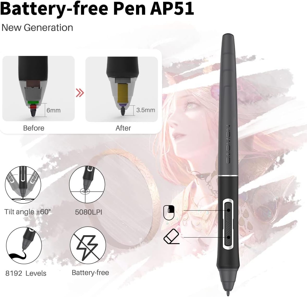 • Дигиталната дъска за рисуване GAOMON PD2200 е снабдена с електромагнитен стилус без батерии. Стилусът предлага 8192 нива на натиск и има два индивидуално програмируеми функционални бутона.