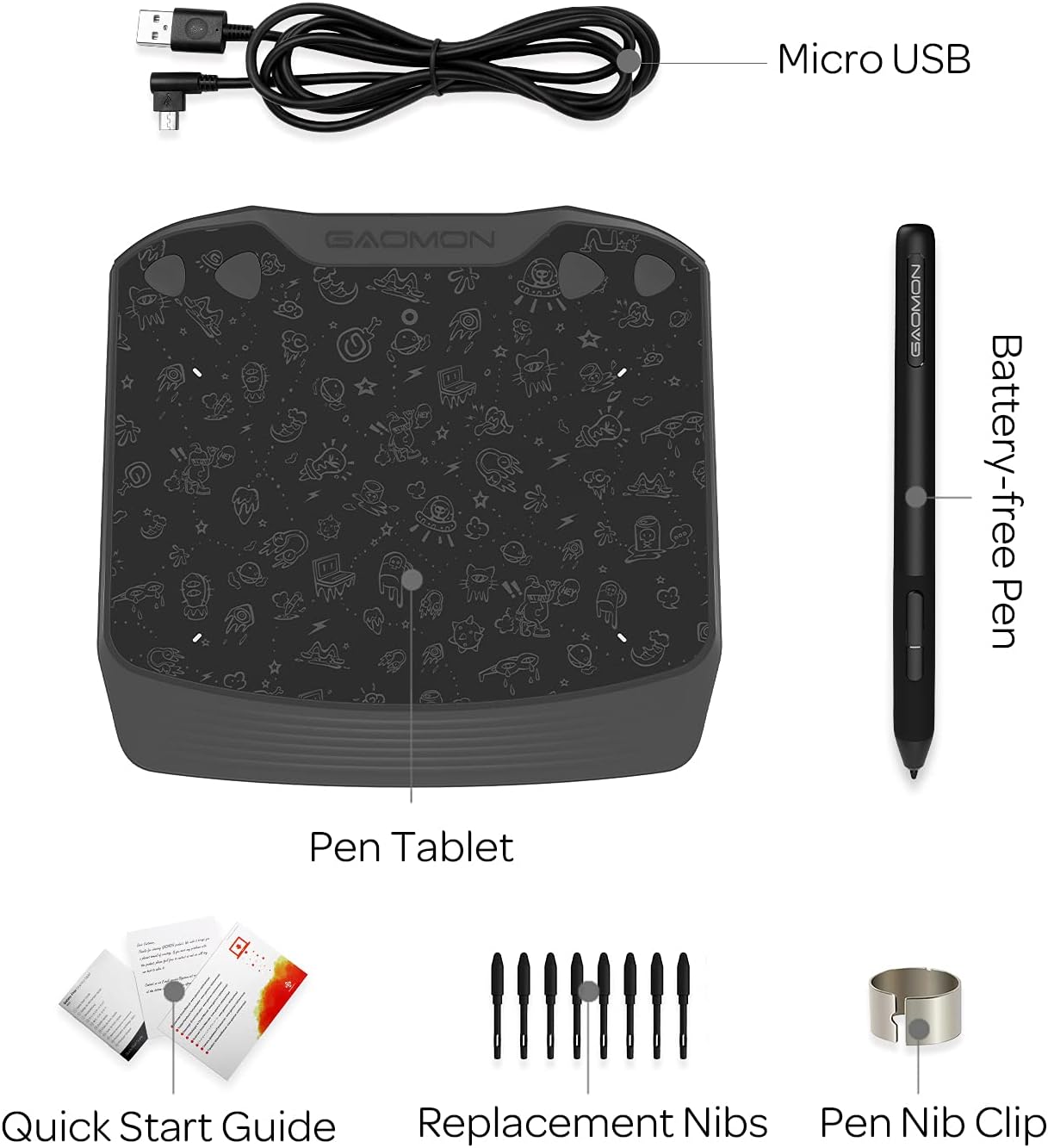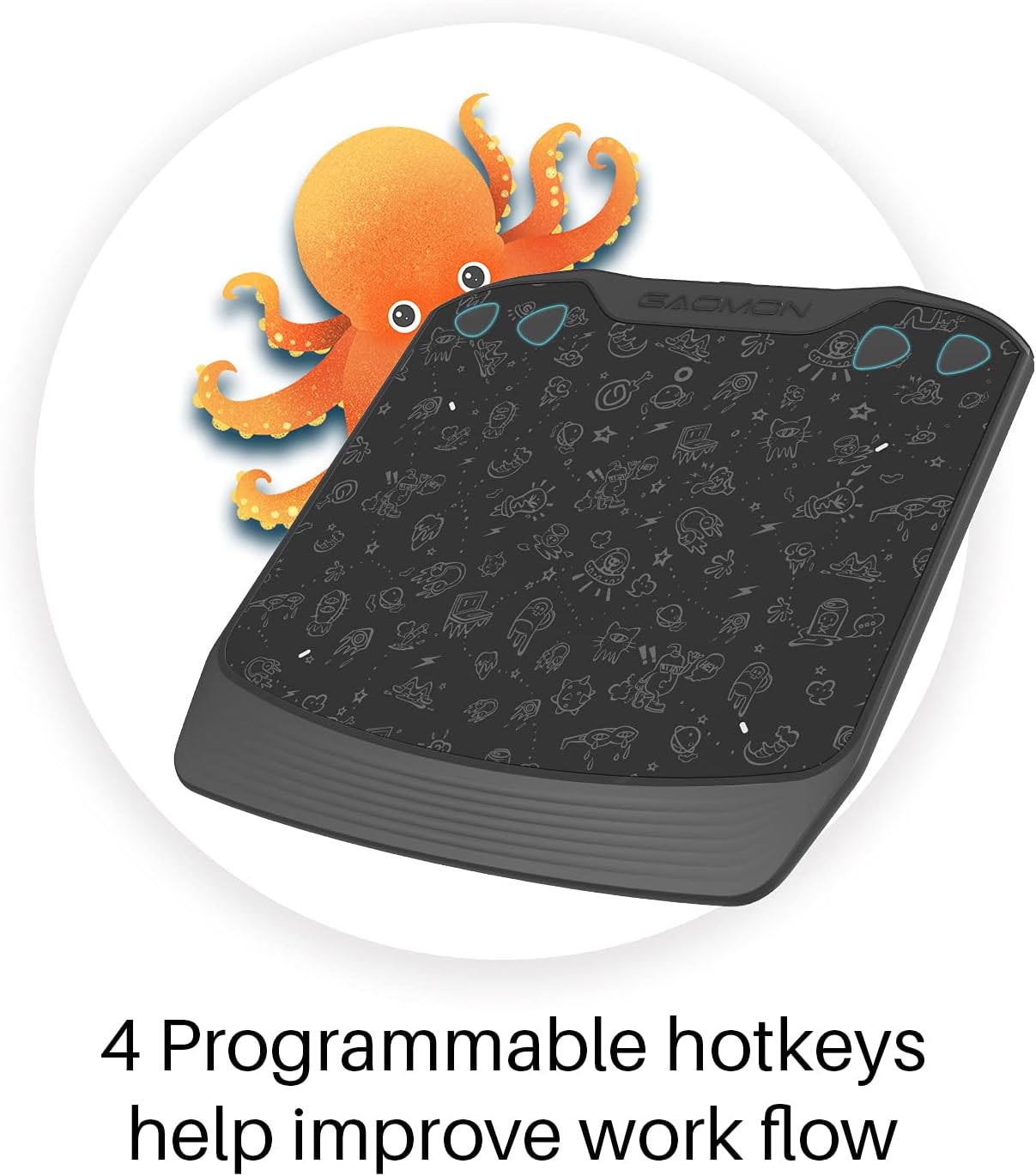 • Ергономичен дизайн: 4 гумени крачета осигуряват стабилността на графичния таблет GAOMON и предотвратяват подхлъзването му. Поддръжка за лява и дясна ръка: Задайте завъртане на 180 градуса в драйвера на GAOMON, за да настроите режим за лява ръка.