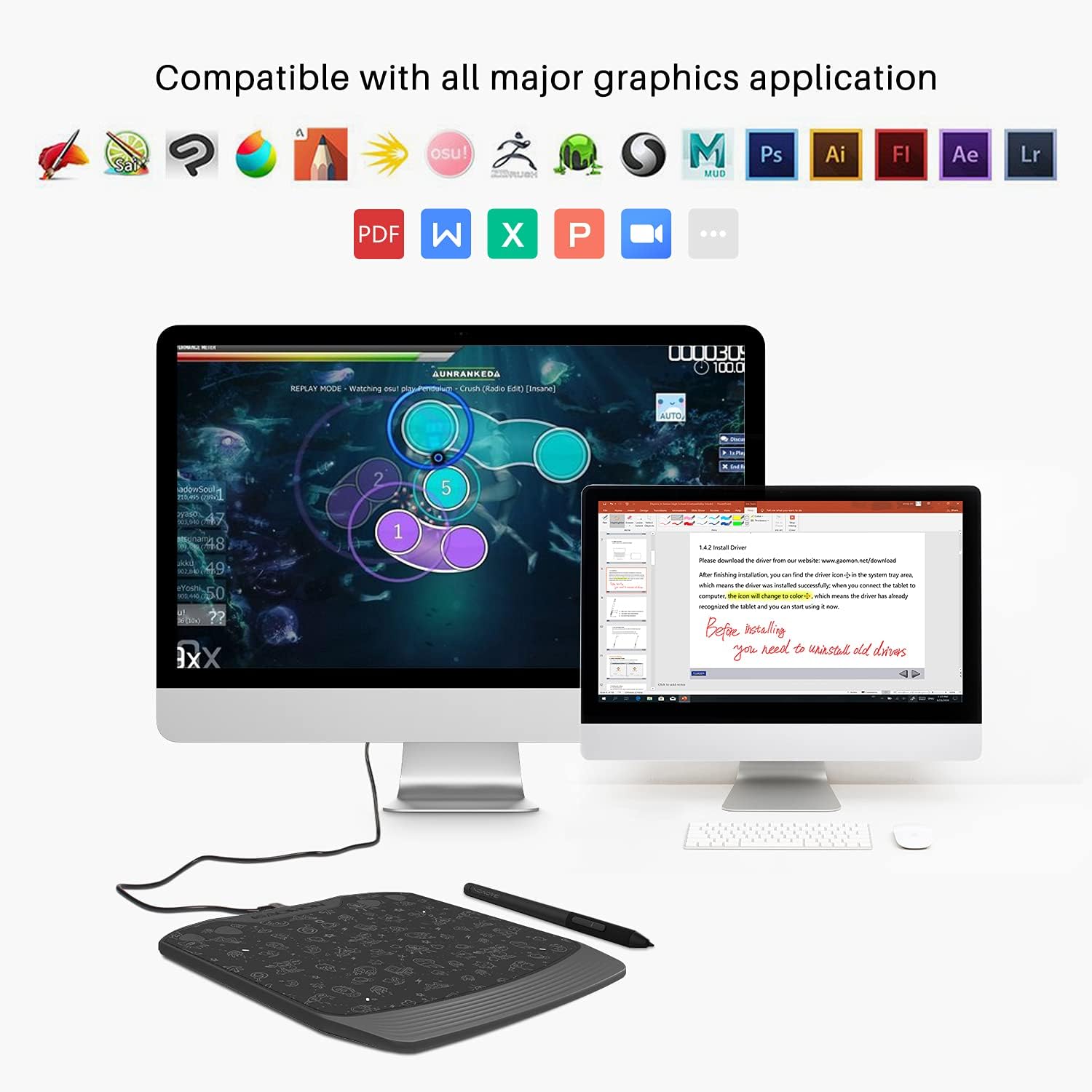 • 【За онлайн срещи и онлайн класове】Можете да използвате графичния таблет GAOMON S620 за онлайн обучение и дистанционни срещи. Таблетът за рисуване GAOMON S620 работи с повечето програми за онлайн срещи, като Zoom и други. 【За писане и подписи】--Можете да подписвате и пишете в Excel, Word, PDF, PPT и др. 【За игри Osu!: Таблетът за рисуване GAOMON S620 е чудесна помощ за игра на ритмични игри като Osu.