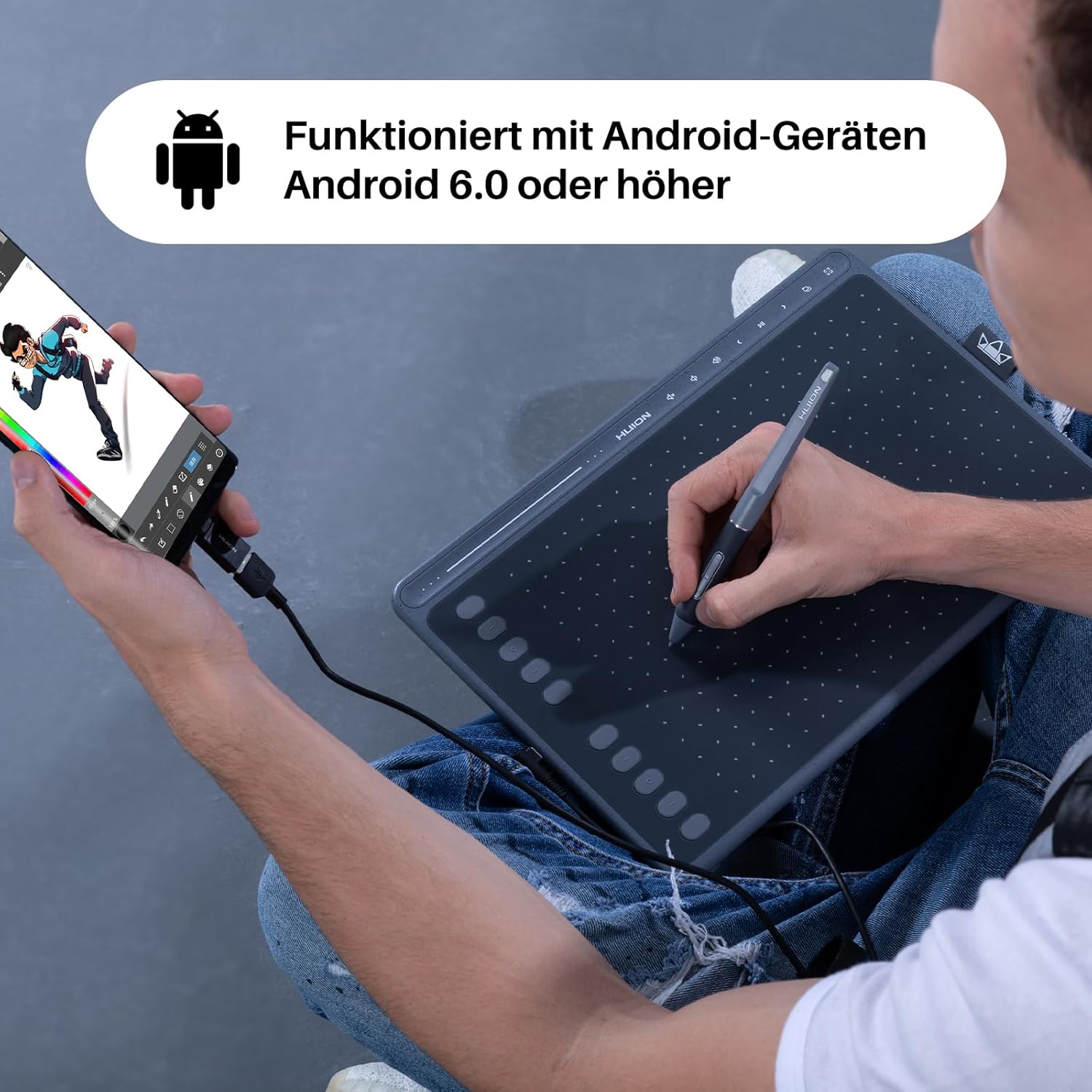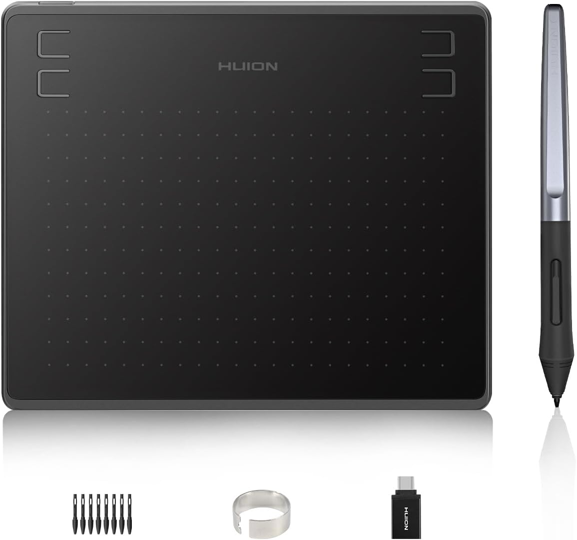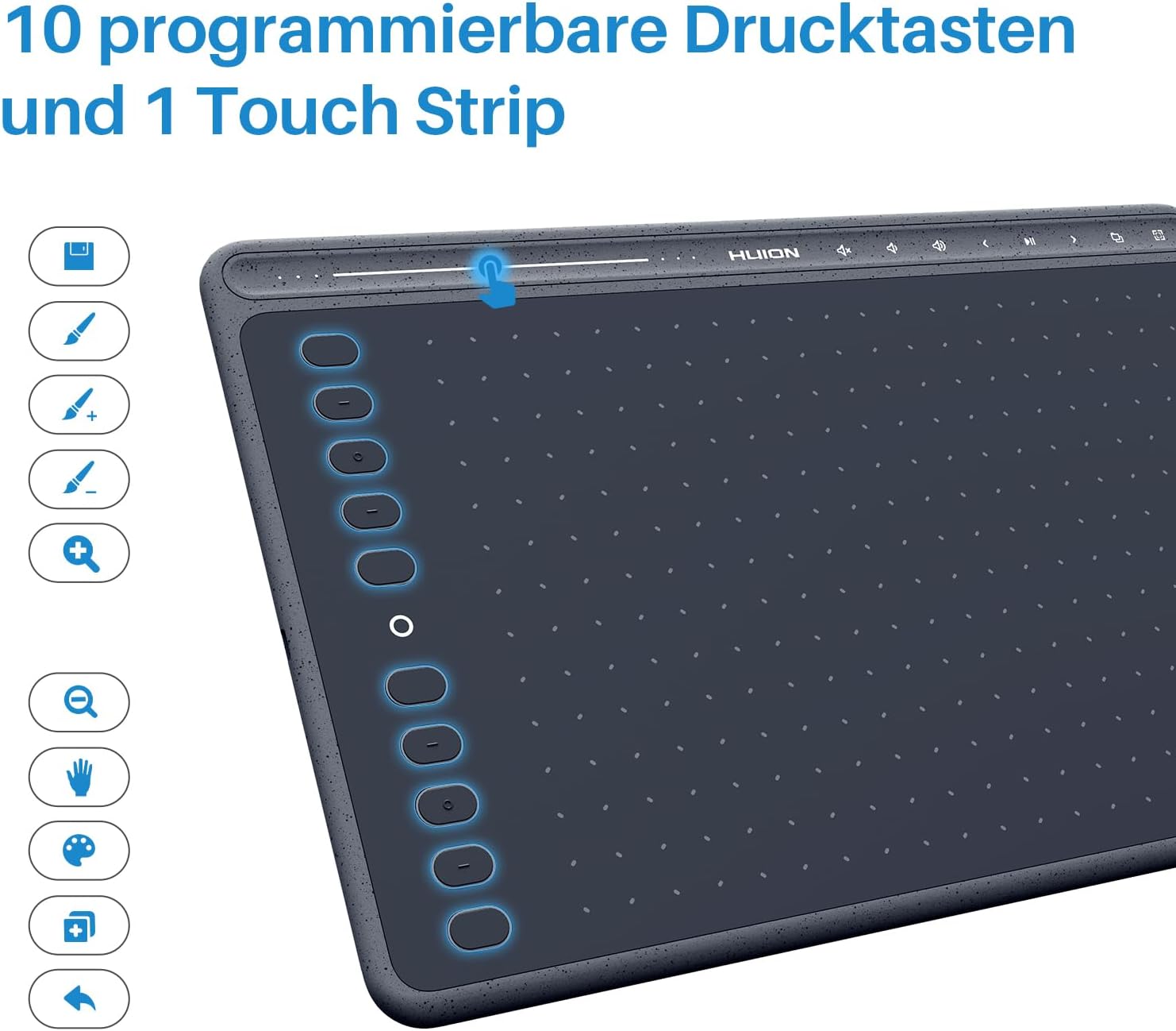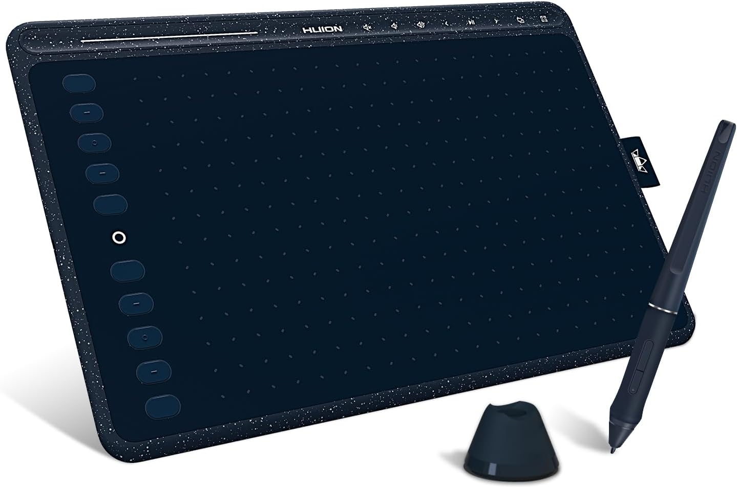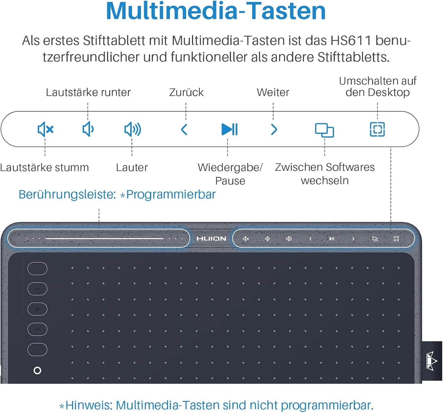 Графичен таблет HUION HS611, професионален таблет за рисуване 10,2 x 6,36 инча, цифрова писалка PW500 без батерии, оборудван с мултимедийни сензорни бутони, регулируема сила на звука, възпроизвеждане на музика, сив