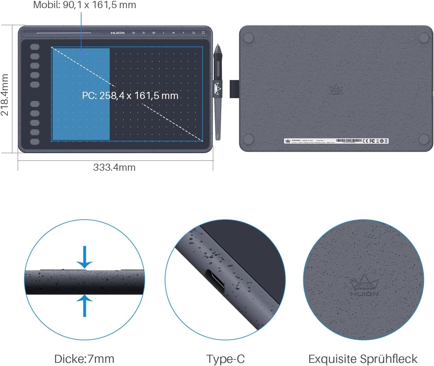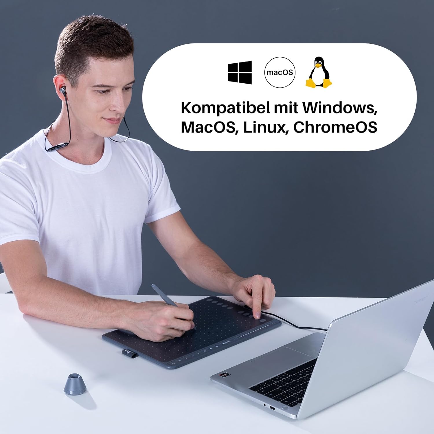• ❈Компактен дизайн с площ за рисуване 8,7 x 5,4 инча, дебелина 8 мм и тегло от 497 г, което го прави лесен за носене. Съвместим с повечето програми за дигитално изкуство: Adobe Photoshop, Illustrator, Corel Painter, Manga Studio, Clip Studio, Zbrush, Krita, GIMP и други.