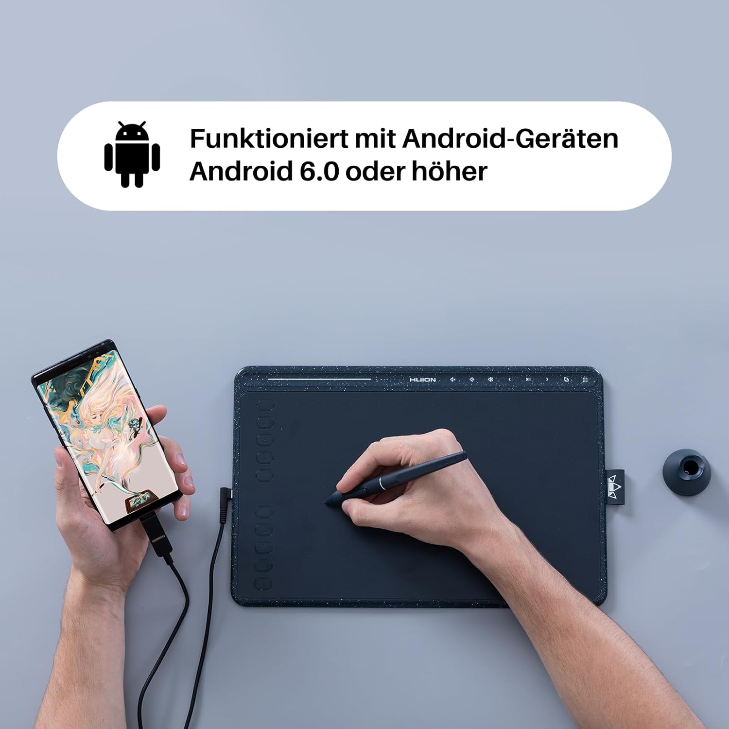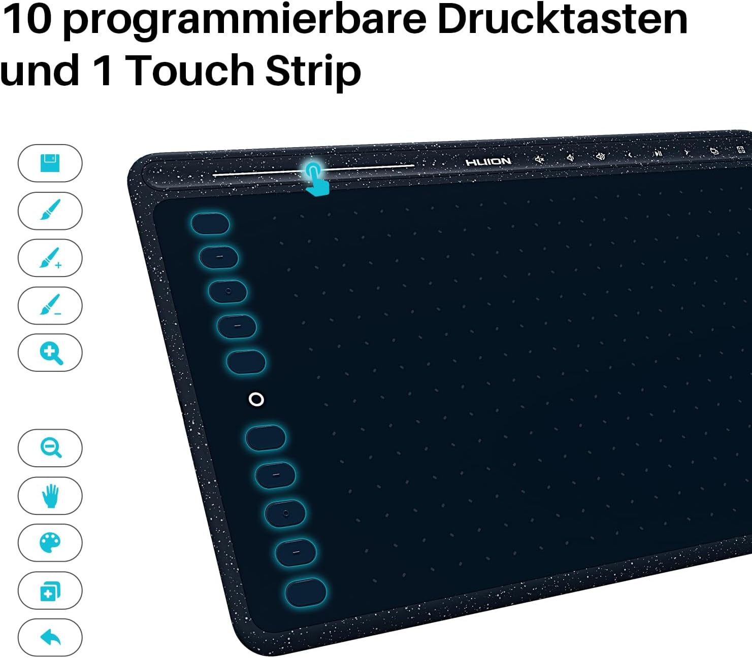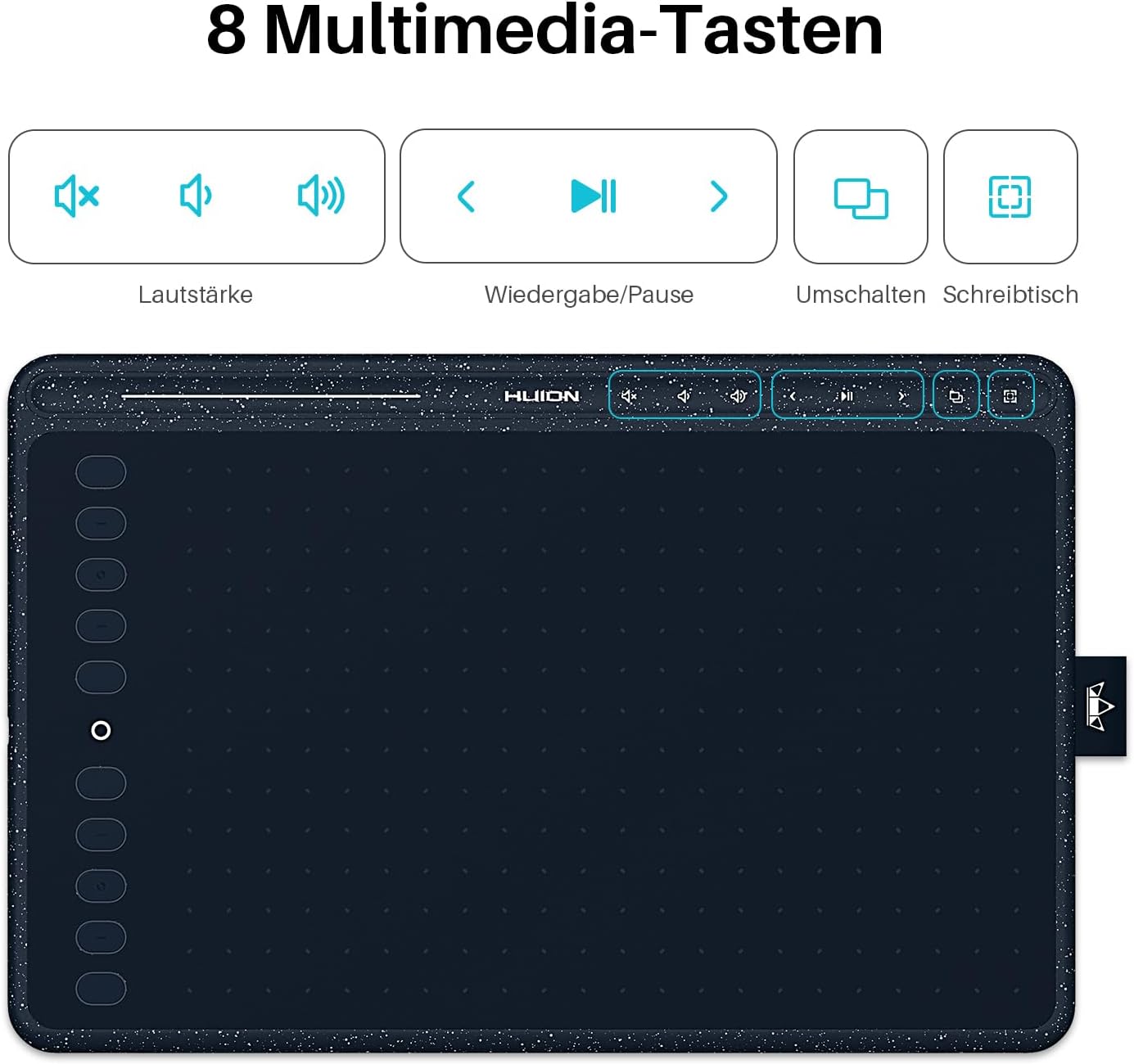 Графичен таблет HUION HS611 с 8 мултимедийни клавиша, 10 експресни клавиша и сензорна лента, 10,2 x 6,36 инча, таблет за рисуване за Windows, Mac, Android, идеален за дигитално изкуство, рисуване и дизайн, звездно син