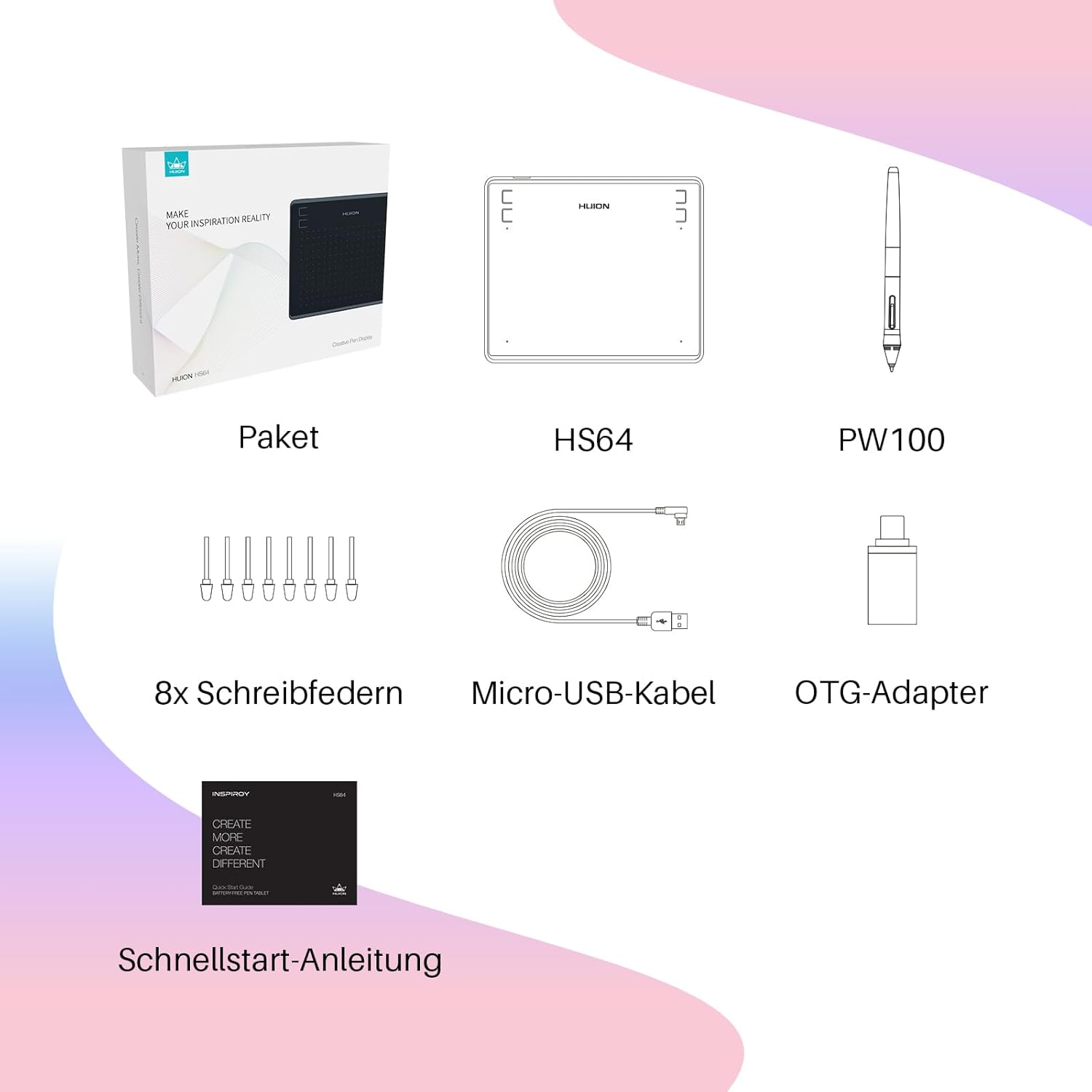 Графичен таблет HUION HS64, 4 Express бутона, чувствителна на натиск писалка 8192, 6,3 x 4 инча, таблет за рисуване за Win, Mac, Android, идеален за дигитално изкуство, рисуване и дизайн