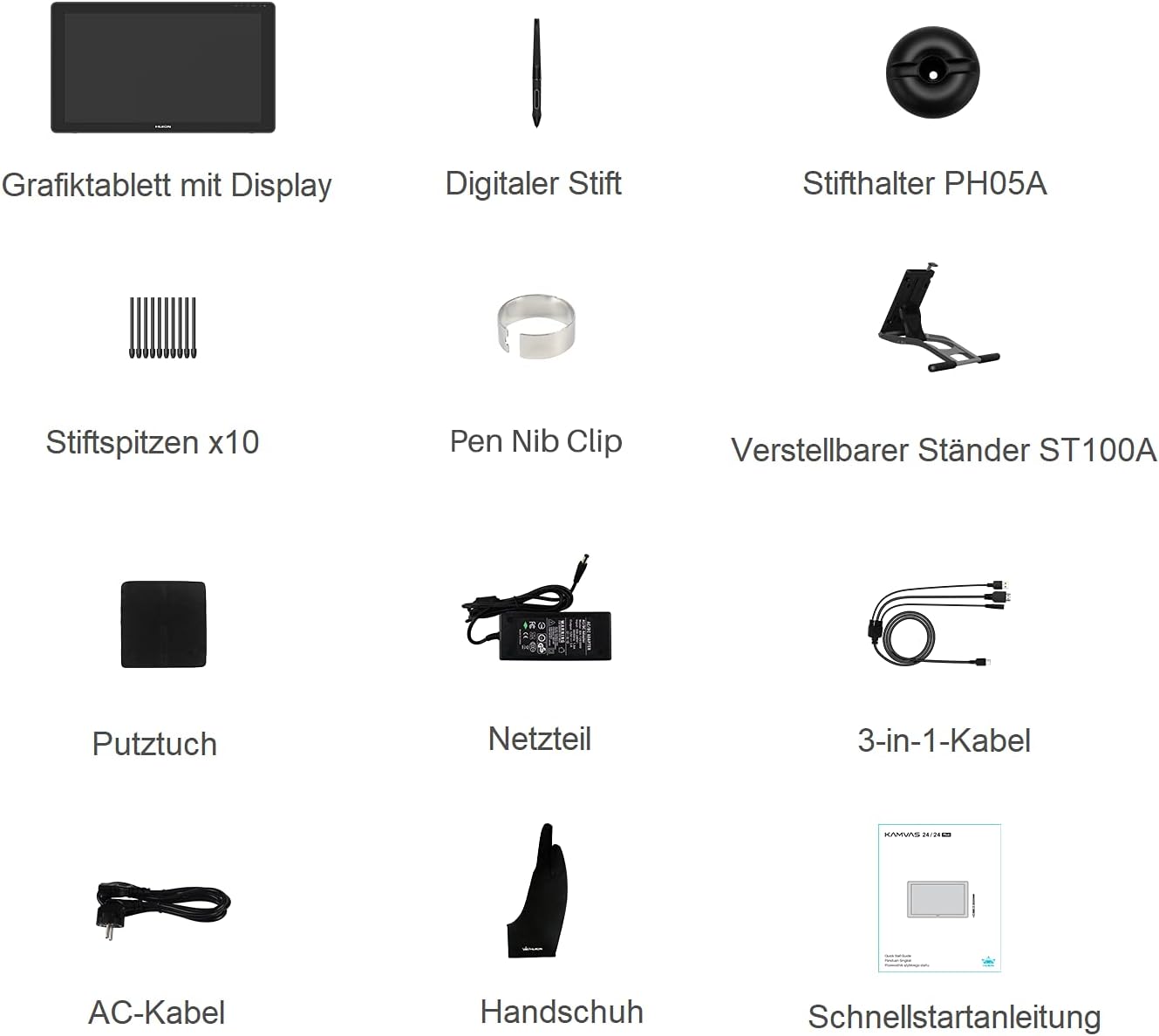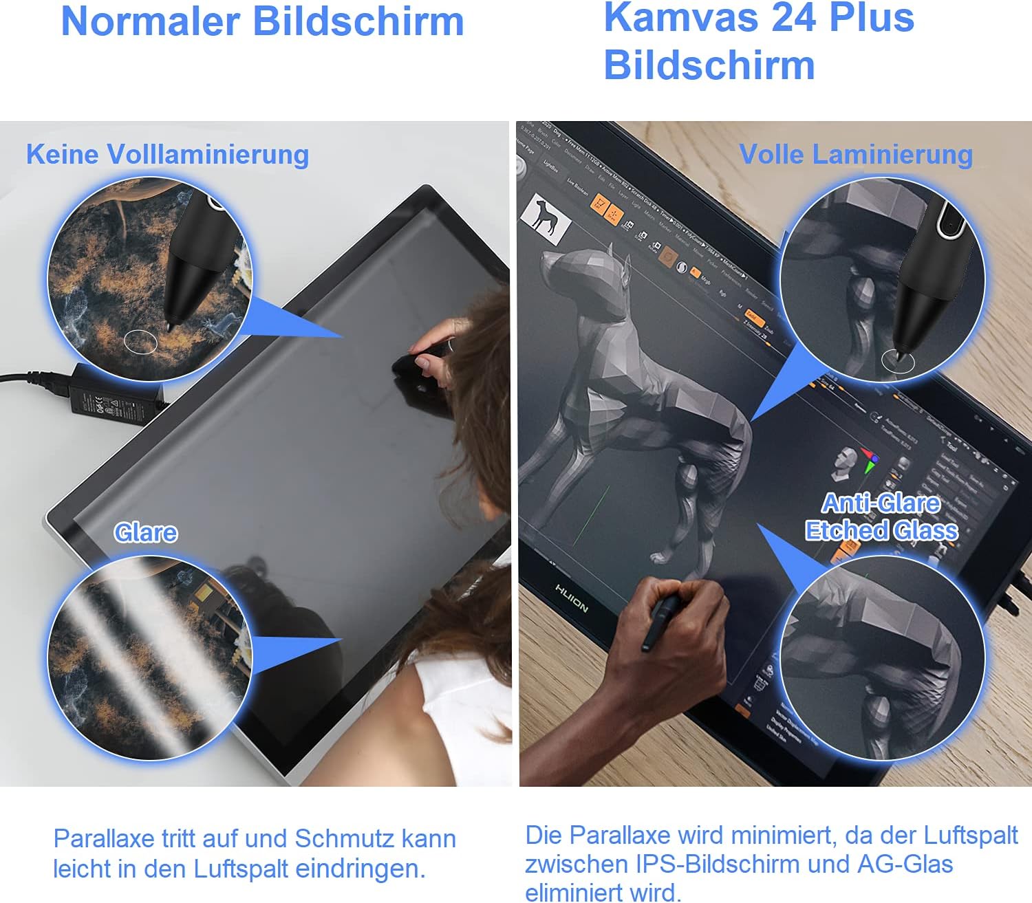 Графичен таблет HUION Kamvas 24 Plus с дисплей, 23,8-инчов изцяло ламиниран QD LCD екран, изработен от антирефлексно стъкло, 140% sRGB гама, 2,5K QHD дисплей за писалка, 8192 нива, писалка без батерии