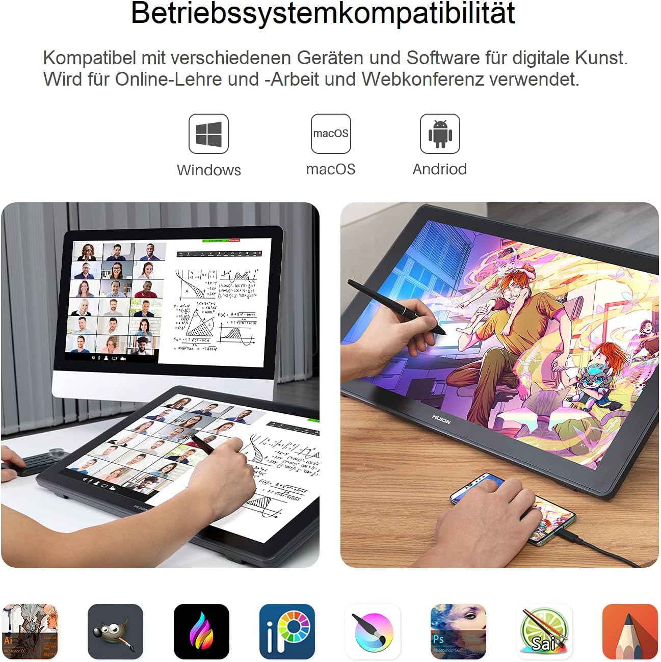 • Съвместим с Windows, MacOS, Android и Linux: Kamvas 16 е съвместим не само с Windows 7 или по-нова версия и MacOS 10.12 или по-нова версия, но може да работи и на Android (телефон и таблети) с опционален кабел Type-C към Type-C с пълна функционалност.