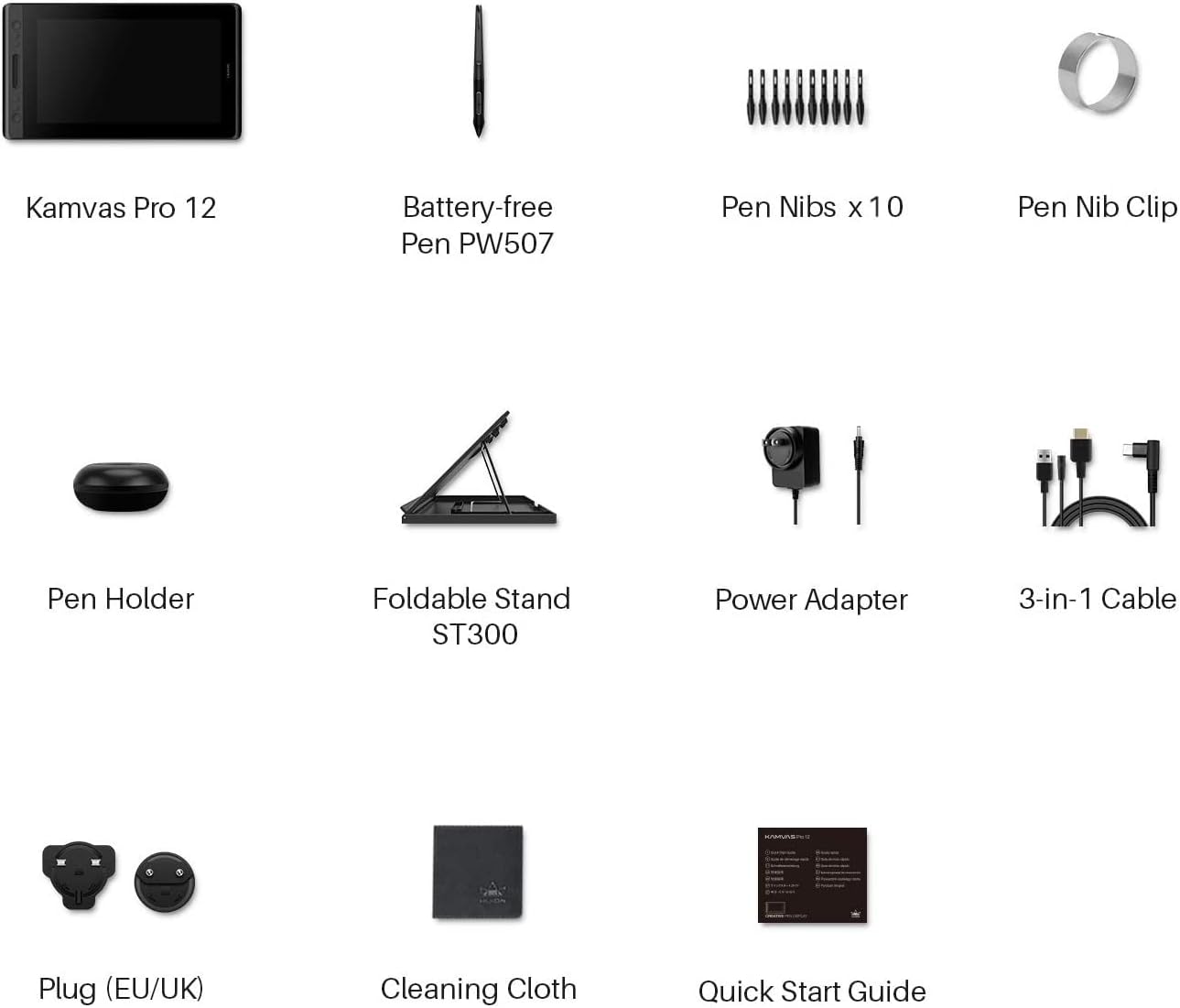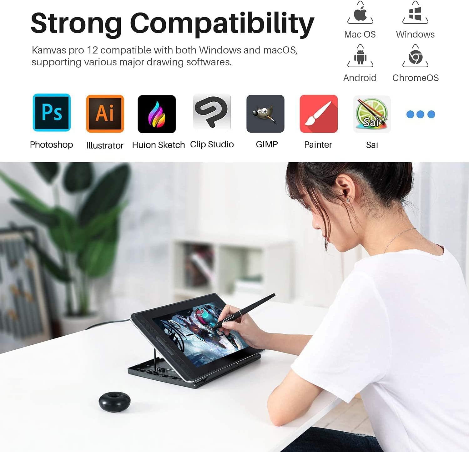 Графичен таблет Huion Kamvas Pro 12 с дисплей, 11,6-инчов изцяло ламиниран монитор за рисуване, с писалка без батерии и регулируема стойка, идеален за работа от вкъщи и дистанционно обучение