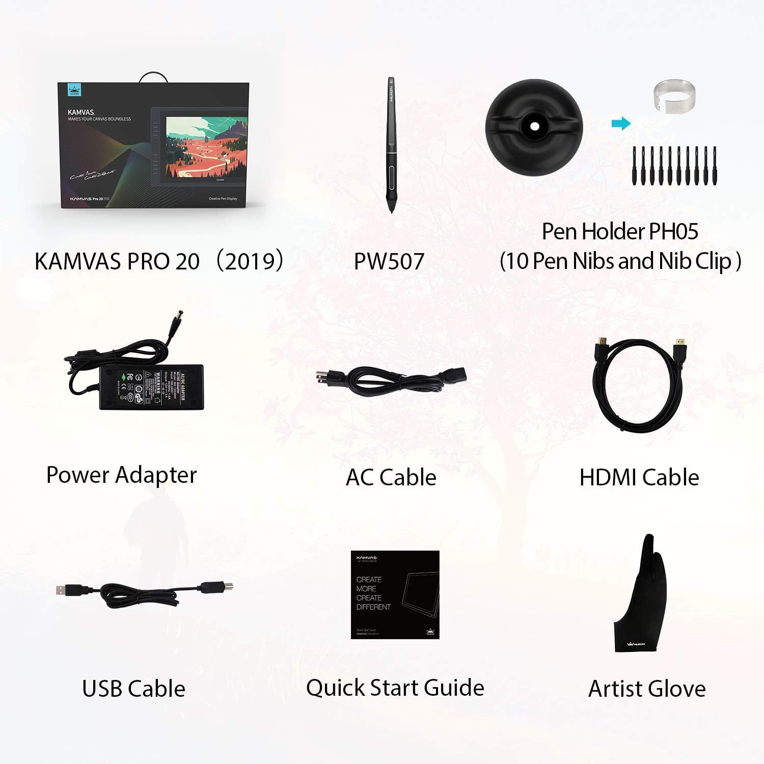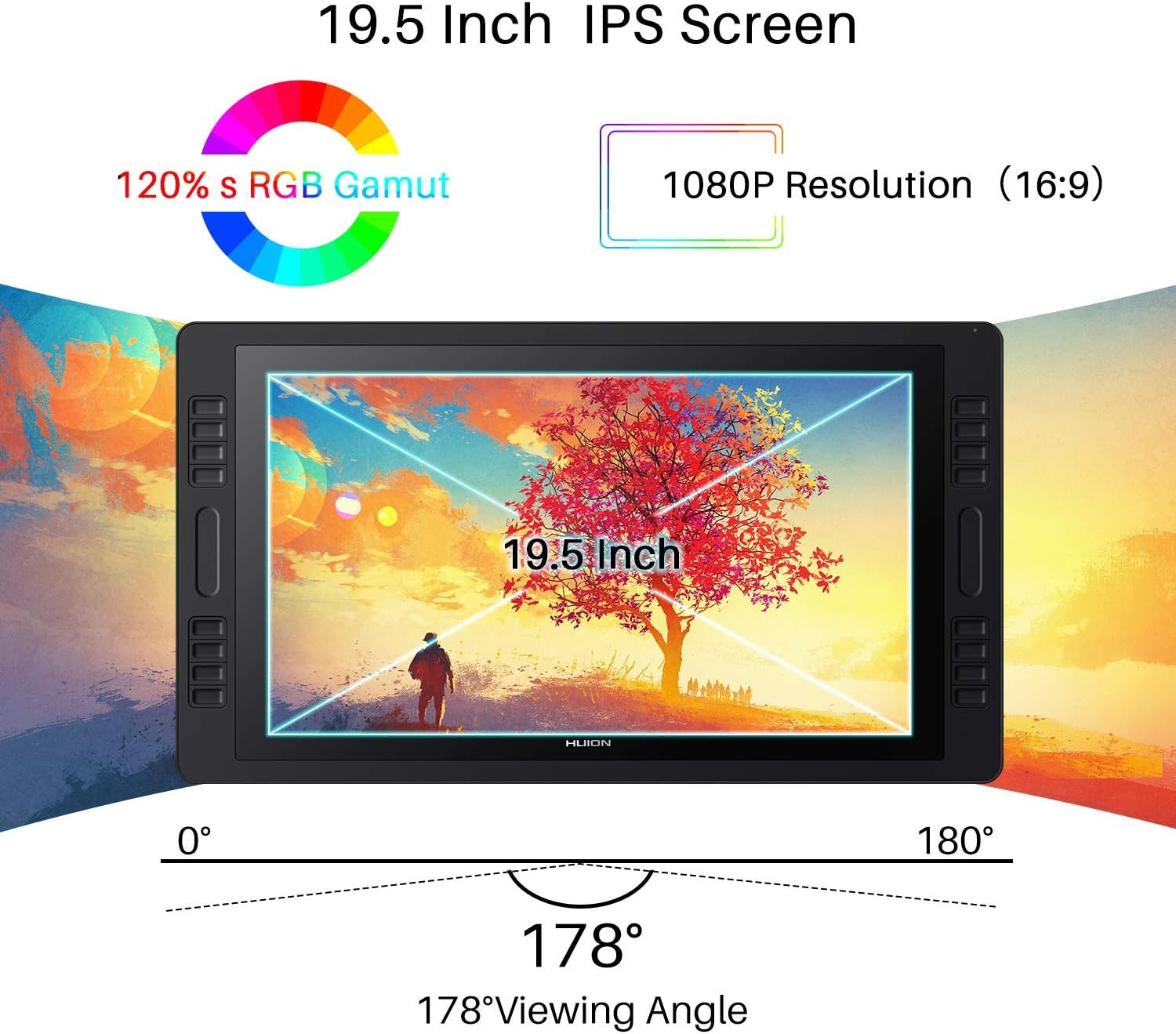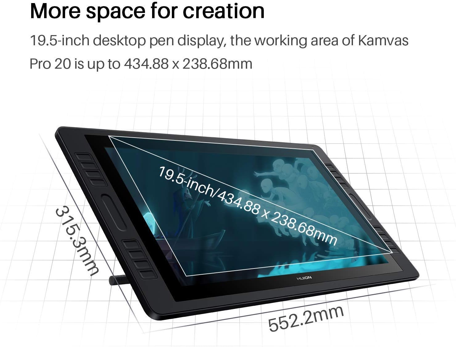 Графичен таблет HUION Kamvas Pro 20 с дисплей 19,53-инчов екран, HD дисплей, писалка без батерии, 16 клавишни комбинации и 2 тъч барове, идеален за домашен офис и електронно обучение