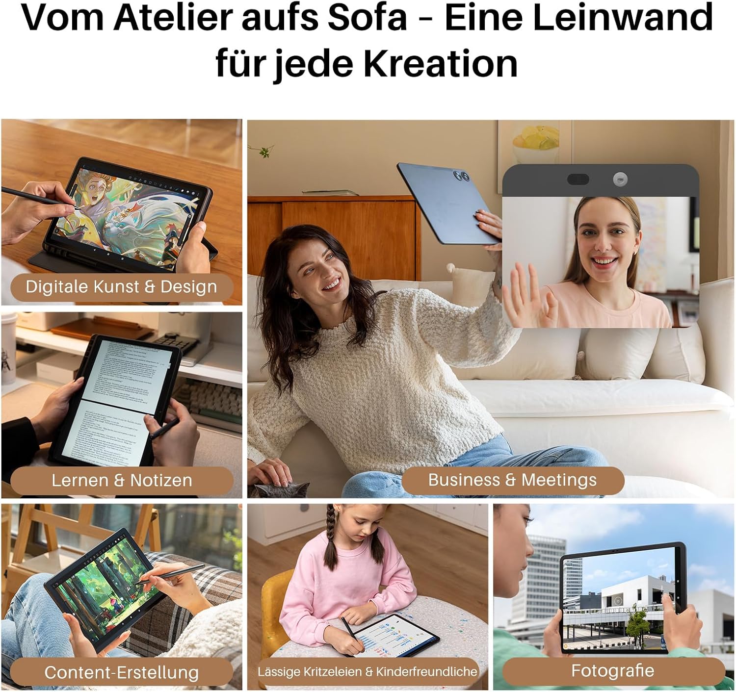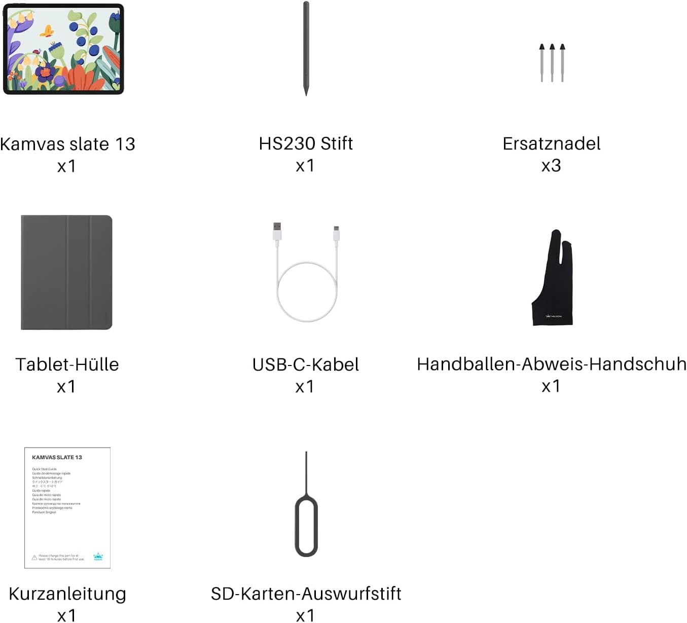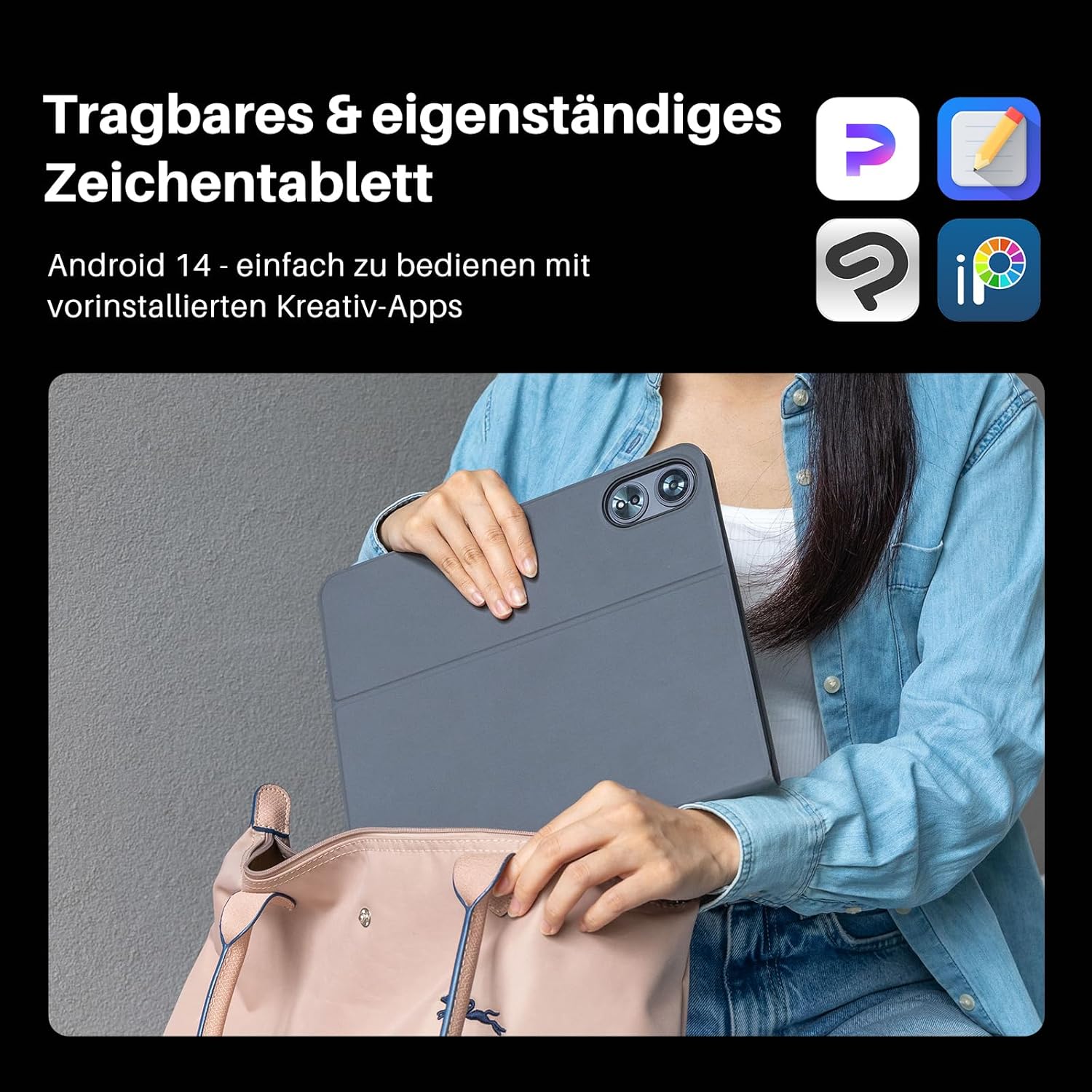 Графичен таблет HUION Kamvas Slate 13 с дисплей без компютър, 12,7-инчов самостоятелен таблет за рисуване с 2K QHD резолюция, с H-Pencil, 8GB + 256GB, Wi-Fi, батерия 10000mAh, Android 14, Multi-Window