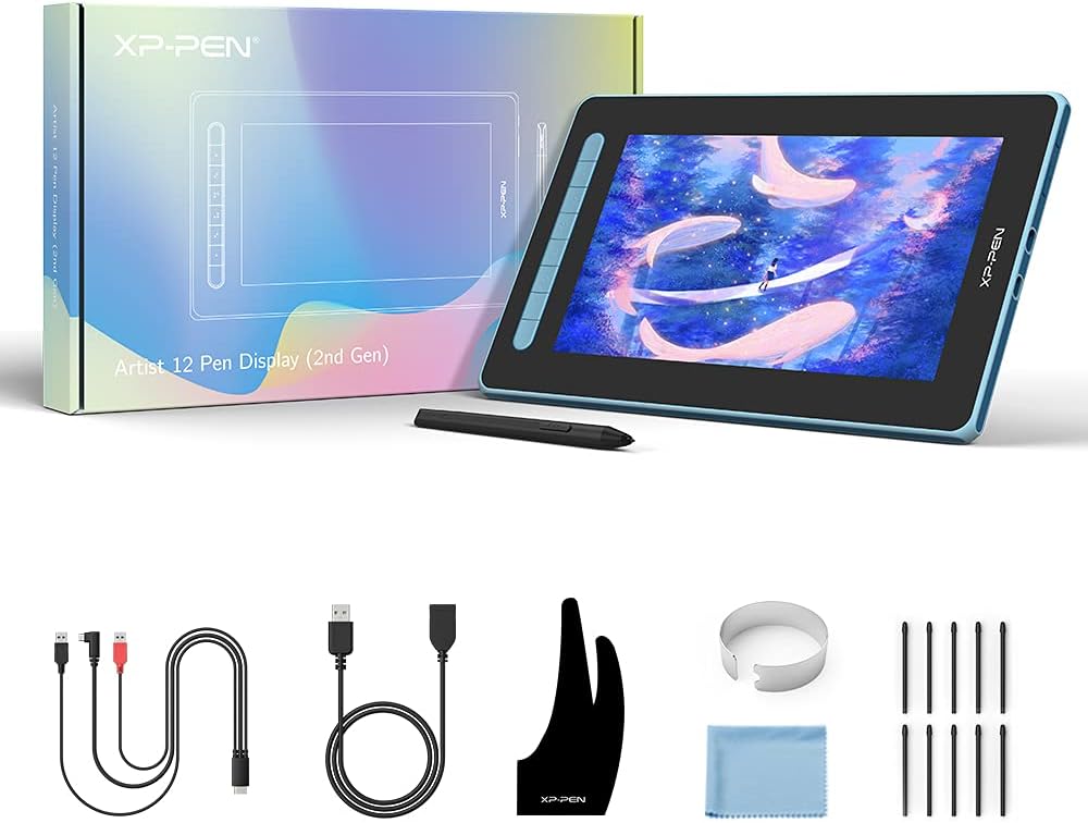 Графичен таблет XP-PEN Artist 12 от 2-ро поколение с дисплей 11,9 инча, 127% sRGB цветово пространство и X3 Smart Chip, писалка без батерии за илюстрация и редактиране на изображения (син)