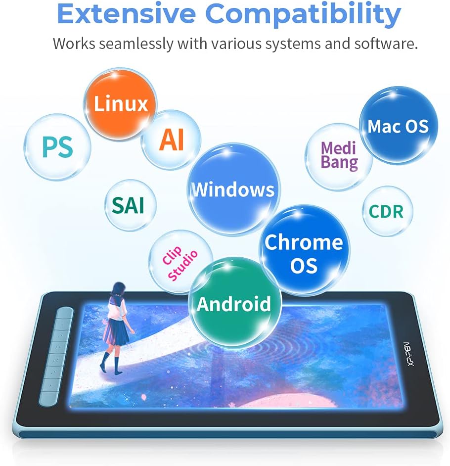 • ♚Пълна съвместимост: Графичният монитор Artist 12 (2-ро поколение) работи с Windows, Mac OS X, Chrome OS, Linux и Android. Освободете креативността си с новия Artist. Графичният таблет Artist 12 (2-ро поколение) с дисплей е съвместим и с различни популярни софтуерни приложения за цифрово рисуване, включително Adobe Photoshop, Illustrator, SAI, CDR, GIMP, Krita и MediBang.
