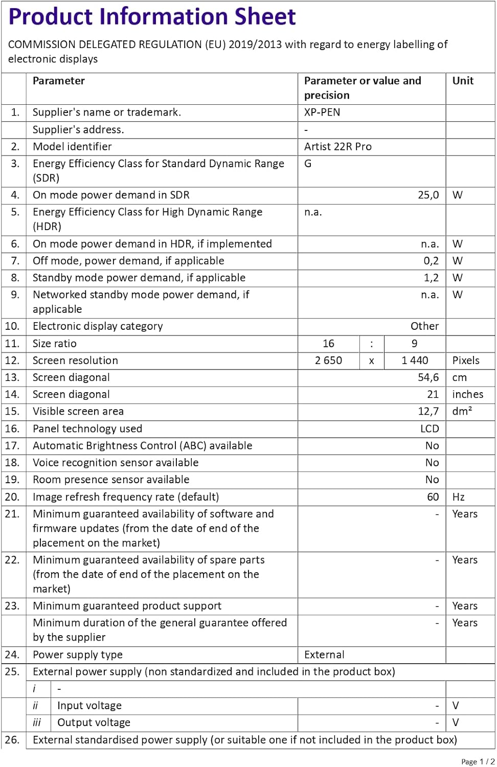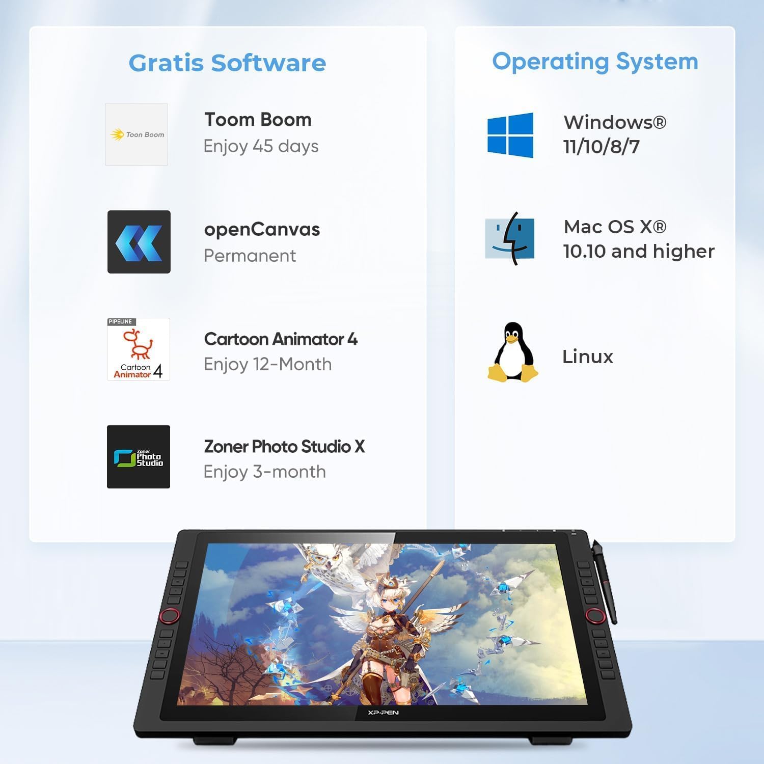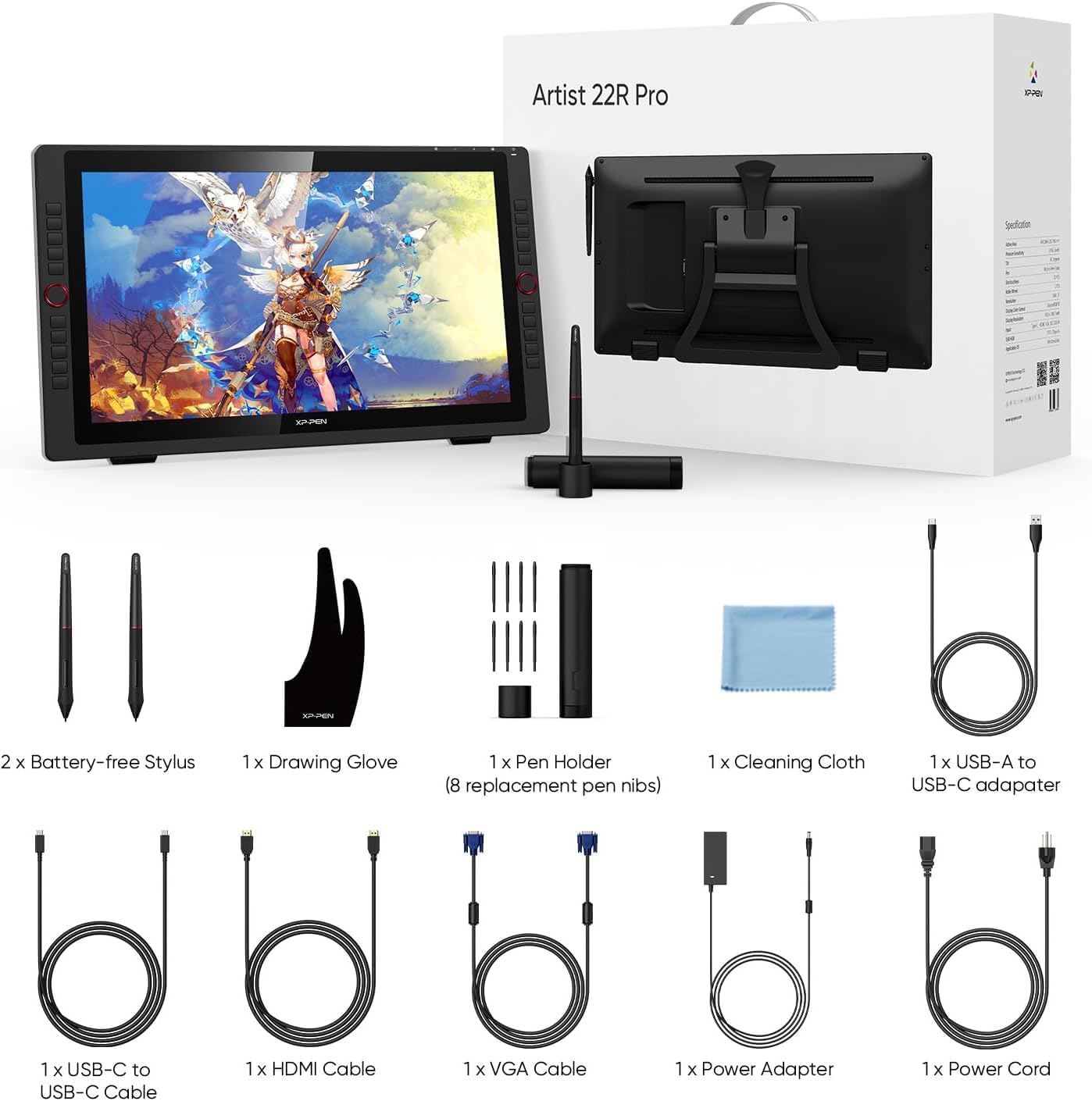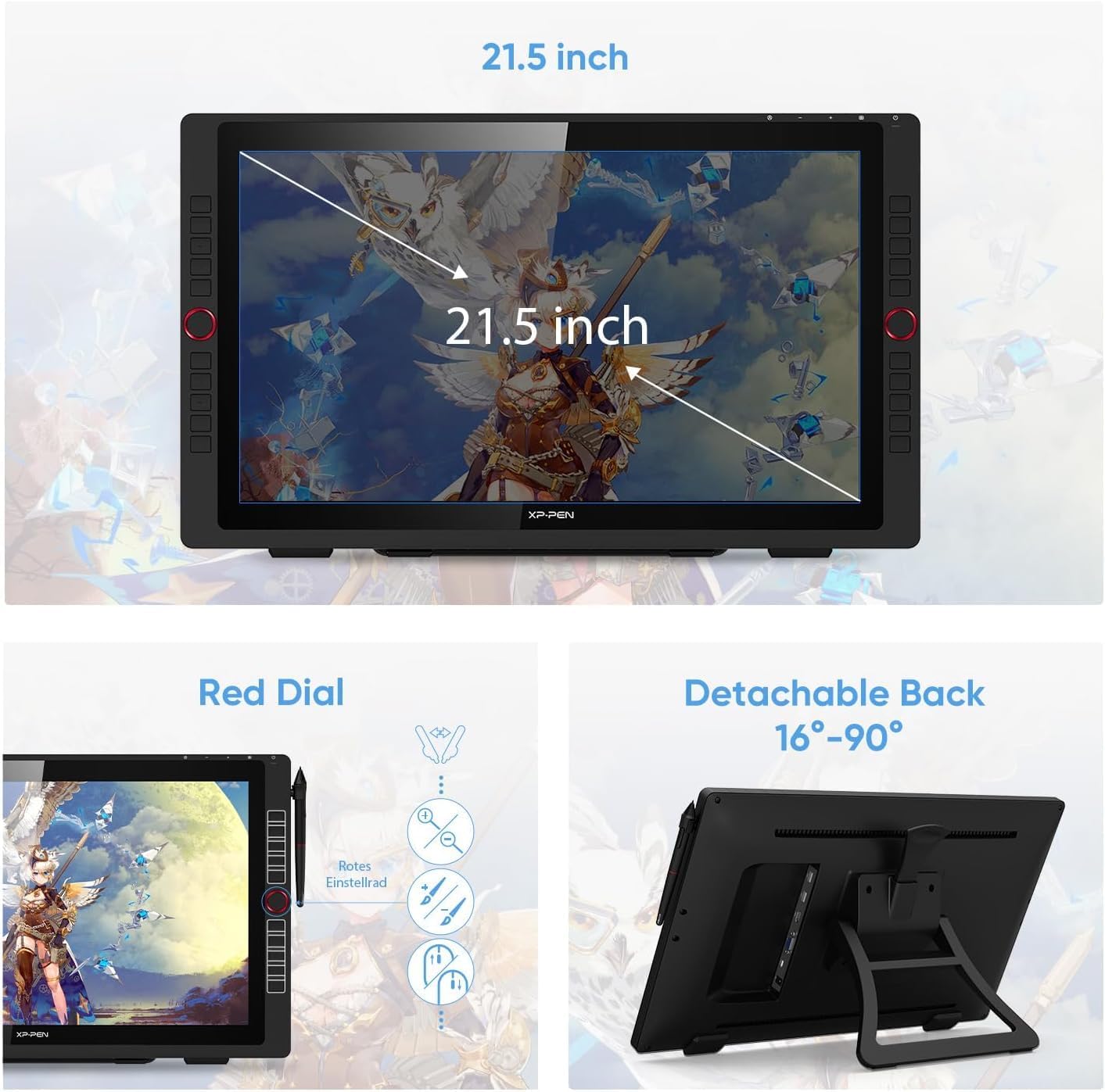 Графичен таблет XP-PEN Artist 22R Pro с дисплей, 21,5" графичен монитор, 120% sRGB с писалка без батерии с накланяне до 60°, регулируема стойка, скициране/рисуване/редактиране на снимки