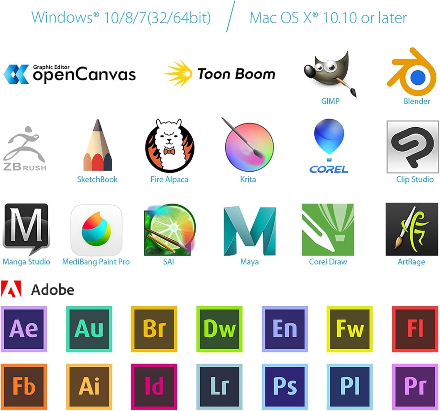 • Точни цветове с високо възпроизвеждане на цветовете: Графичният таблет Artist 22R Pro има отлична точност на цветовете от 88% NTSC (Adobe RGB ≧ 90%, sRGB ≧ 120%), което добавя повече блясък, по-изящни детайли и живи цветове към вашите творения.